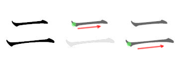 # 첫 번째 획의 오른쪽 아래에 왼쪽에서 오른쪽으로 가는 또 다른 짧은 가로 획.