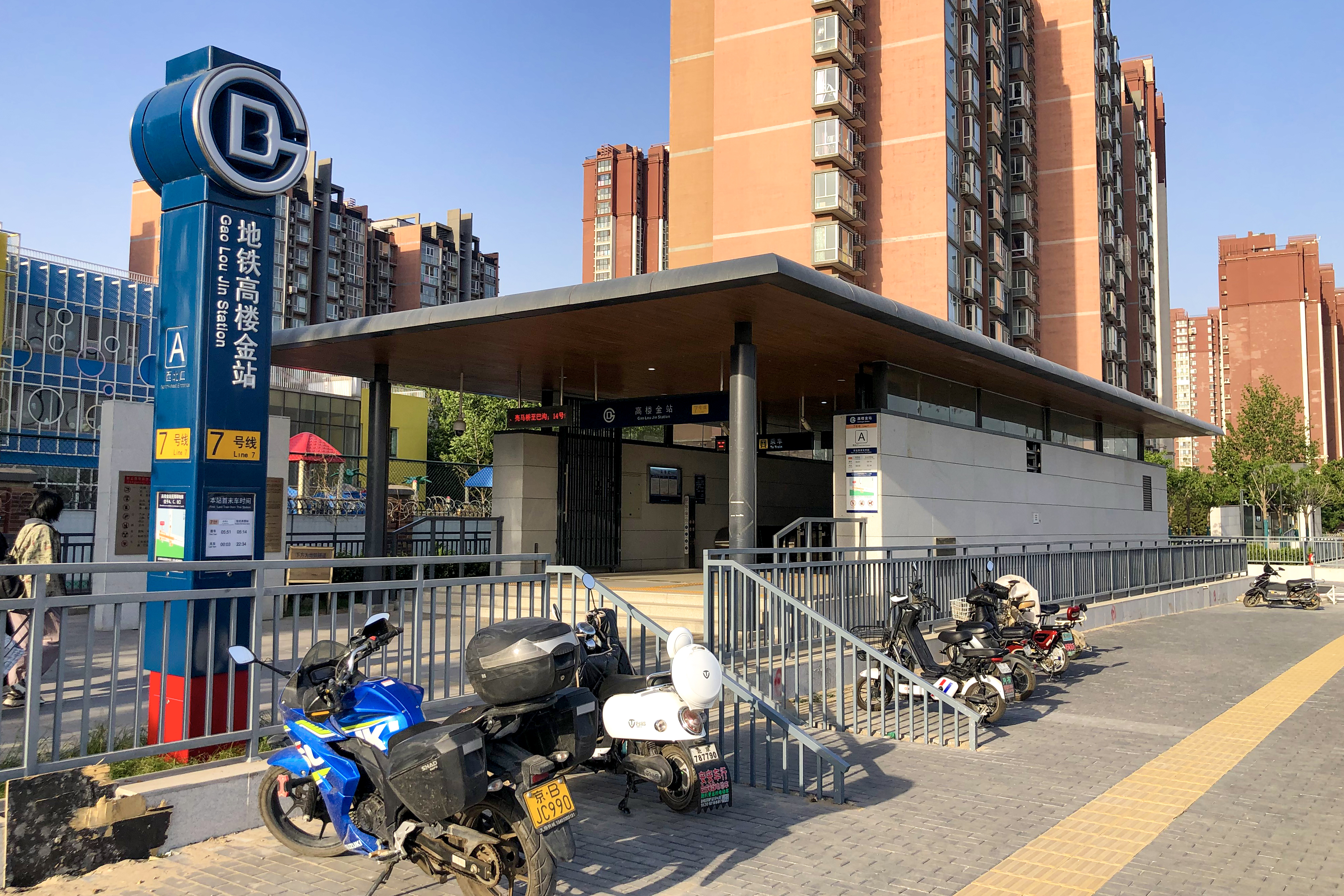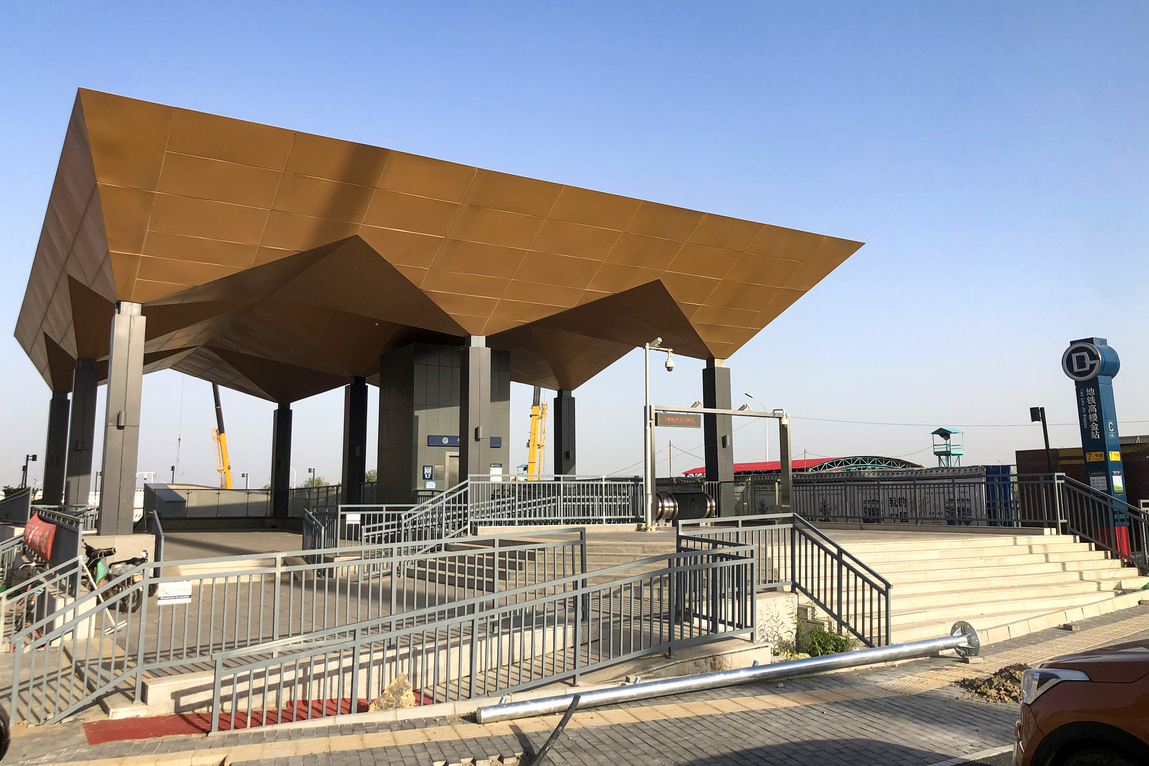 이 역은 퉁저우구 리위안 타운(梨园镇) 가오러우진 마을(高楼金村) 내 췬팡 남가(群芳南街)와 이루이 중1로(颐瑞中一路) - 원팡1항(文坊一巷) 교차로 아래에 위치하고 췬팡 남가를 따라 동서 방향으로 배치되어 있다. 역명은 가오러우진 마을(高楼金村)의 이름을 따서 제정되었고[1], 이 마을의 행정명은 샤오가오리좡(小高丽庄), 루쯔좡(楼子庄), 진좡(金庄)의 세 자연 마을을 조합한 것이다[2].