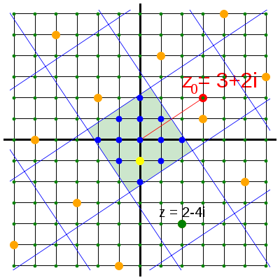 복소평면에서 가우스 정수는 2차원 정수격자를 구성한다.