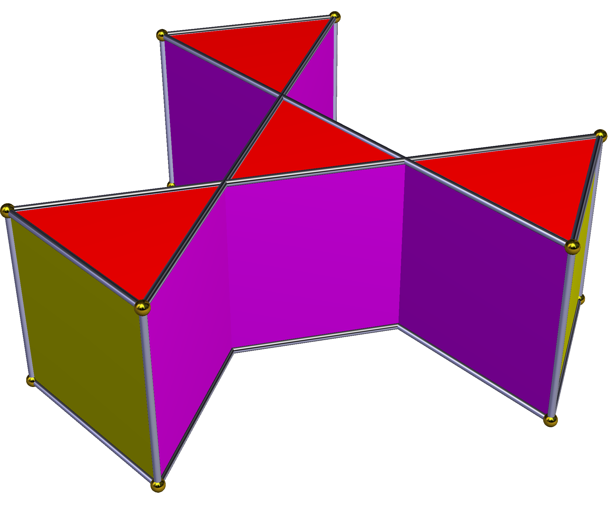 사면반육면체는 7개의 면, 12개의 모서리, 6개의 꼭짓점을 가지며 오일러 지표가 1인 무방향성 다면체이다. - 고른 다면체 - 깎은 큰 십이면체