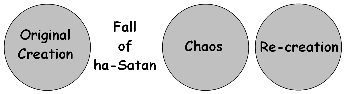 간격 창조론자들은 창세기 1장 1절과 1장 2절 사이에 긴 시간이 존재한다고 주장하며, 이 "간격" 동안 지구의 지질학적 역사가 진행되었다고 본다. 이들은 창세기 1장 2절의 "땅이 혼돈하고 공허하며"라는 구절을, 하나님이 처음에 완전하게 창조하신 세계가 어떤 이유로 파괴된 상태를 묘사한 것으로 해석한다. 간격 창조론을 지지하기 위해 사용되는 성경 구절들은 다음과 같다.[18][13][14]