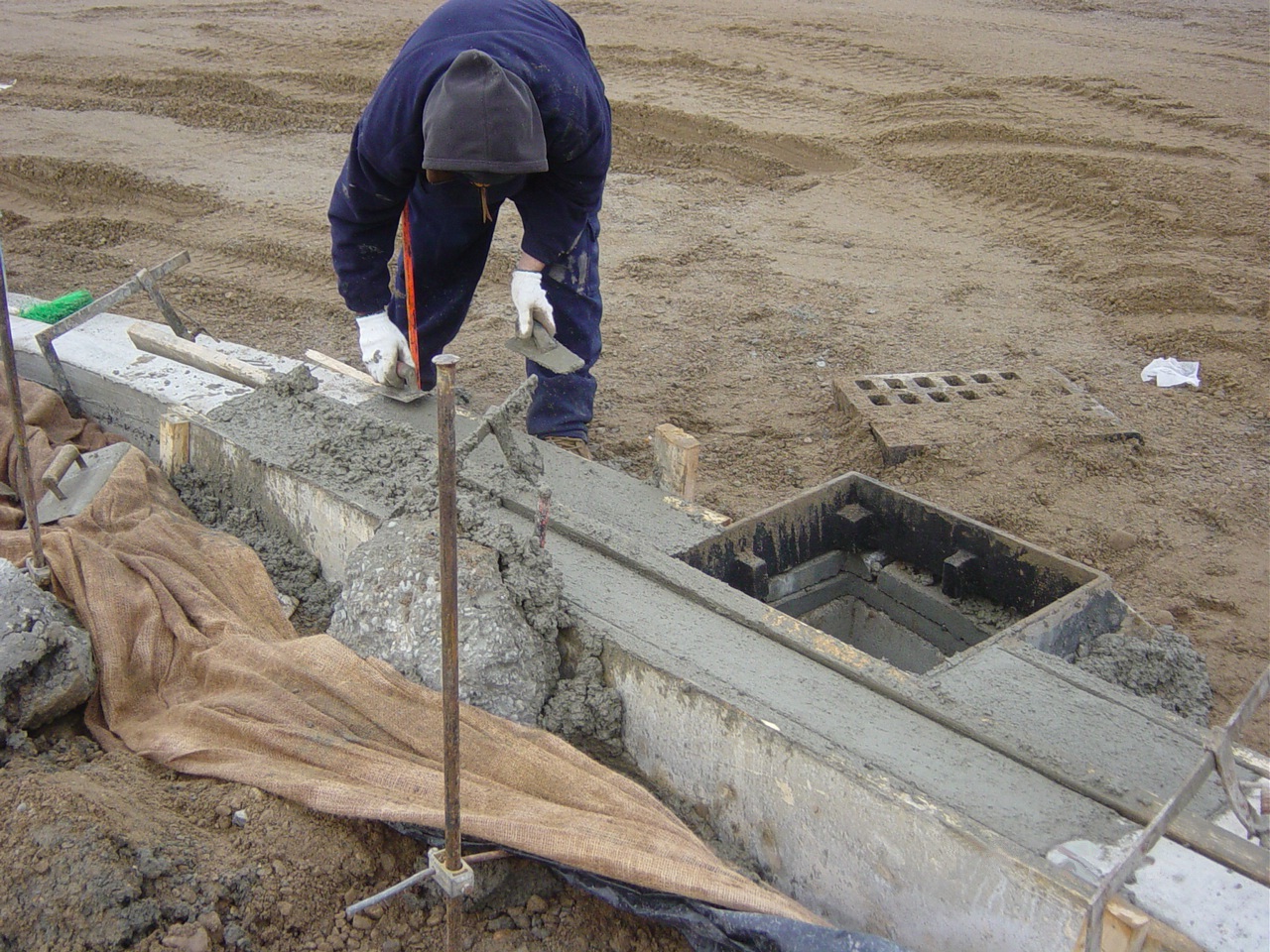 벨기에 블록 갓돌은 콘크리트 슬립 위에 블록을 놓아 만든다. 그런 다음 블록 사이에 더 많은 콘크리트를 끼워 넣어 함께 고정한다. 이 블록은 오르내릴 수 있는 갓돌을 만들기 위해 수직 또는 각도로 배치할 수 있다.
