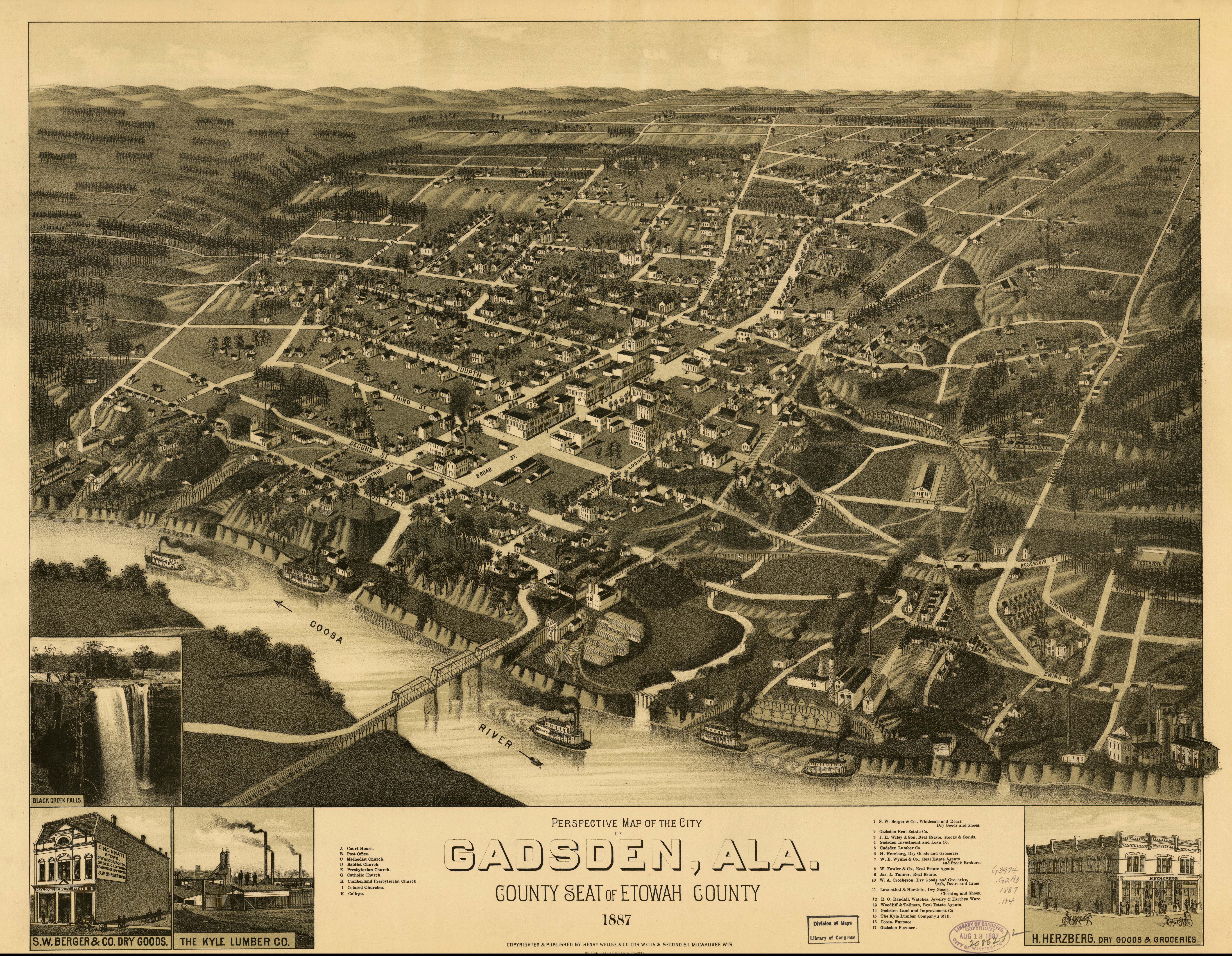 19세기 말, 개즈던은 쿠사 강의 주요 강 항구이자 중공업 중심지로 발전했다. 20세기 초에는 리퍼블릭 스틸, 걸프 스테이츠 스틸, 굿이어 타이어 앤 러버 공장이 들어서면서 공업 도시로 번영했다. 제2차 세계 대전 중에는 개즈던에 군수 공장이 설치되어 1,600만 발 이상의 포탄을 생산했다.[34]