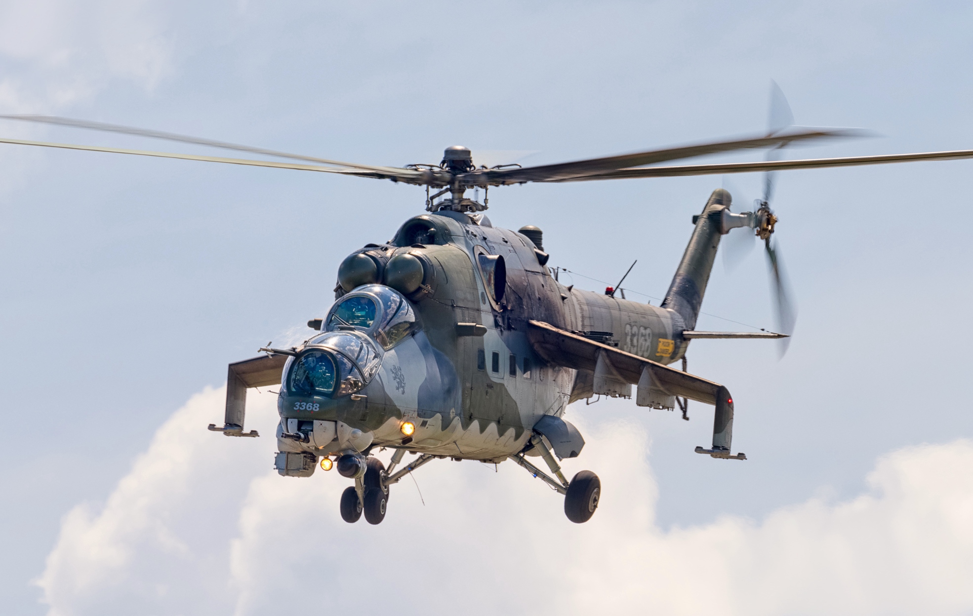 소련에서 개발한 밀 Mi-24(나토 코드명: Hind)는 대형 중무장 헬리콥터 건십이면서 동시에 병력 수송 헬리콥터의 역할도 수행할 수 있도록 설계되었다.[10] 1970년대에 도입되어 소련 공군 및 그 후신 조직, 그리고 30개 이상의 다른 국가에서 운용되었다.[11] Mi-24는 약 1.27cm(12.7mm) 기관총탄을 방어할 수 있도록 동체가 강화되었으며, 조종석과 티타늄으로 제작된 회전익(로터) 헤드는 20mm 기관포탄의 피격에도 견딜 수 있도록 설계되었다.[11]