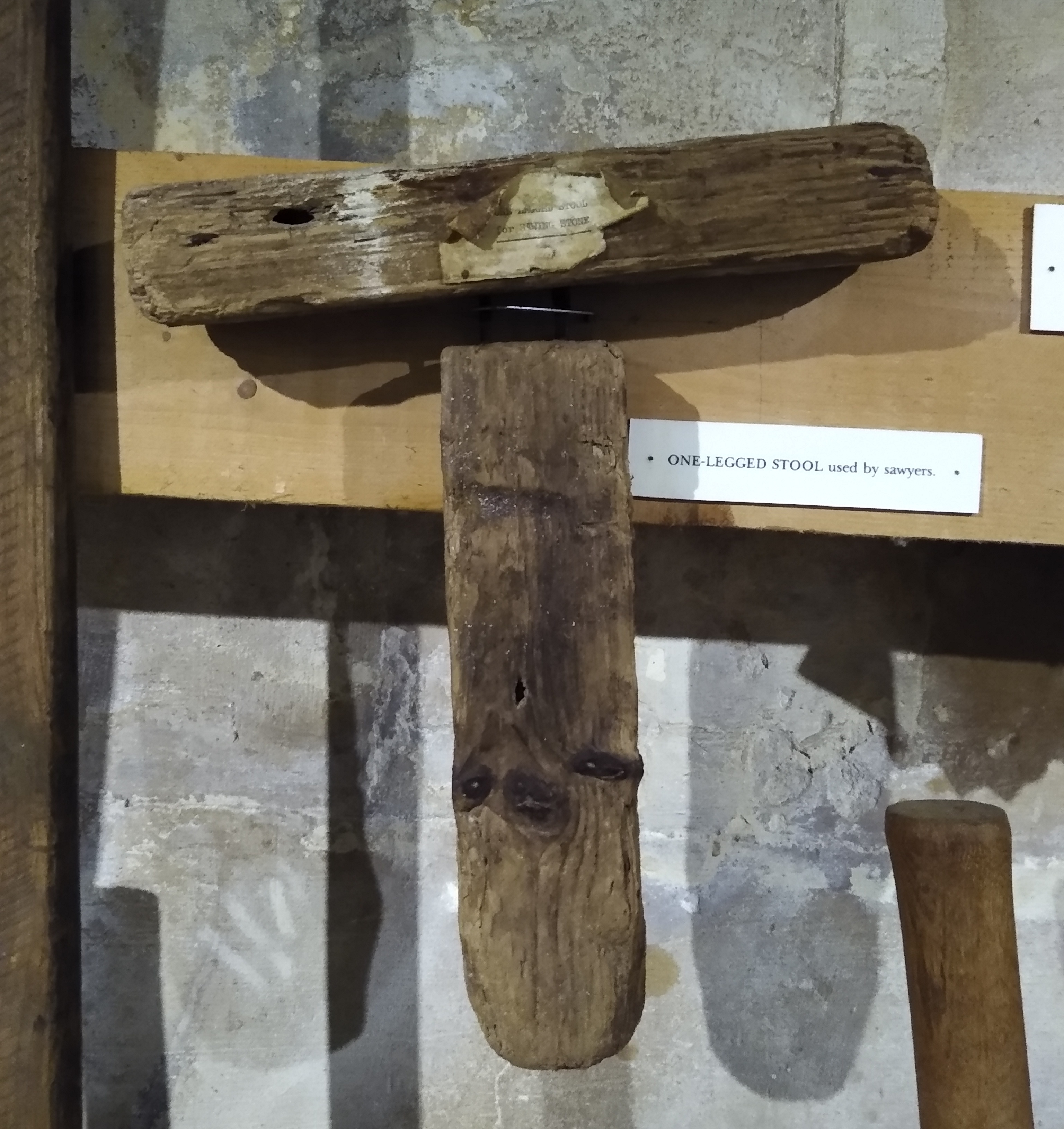 외다리 걸상: 석공 등이 작업의 편의를 위해 사용하는 다리가 하나인 걸상이다.