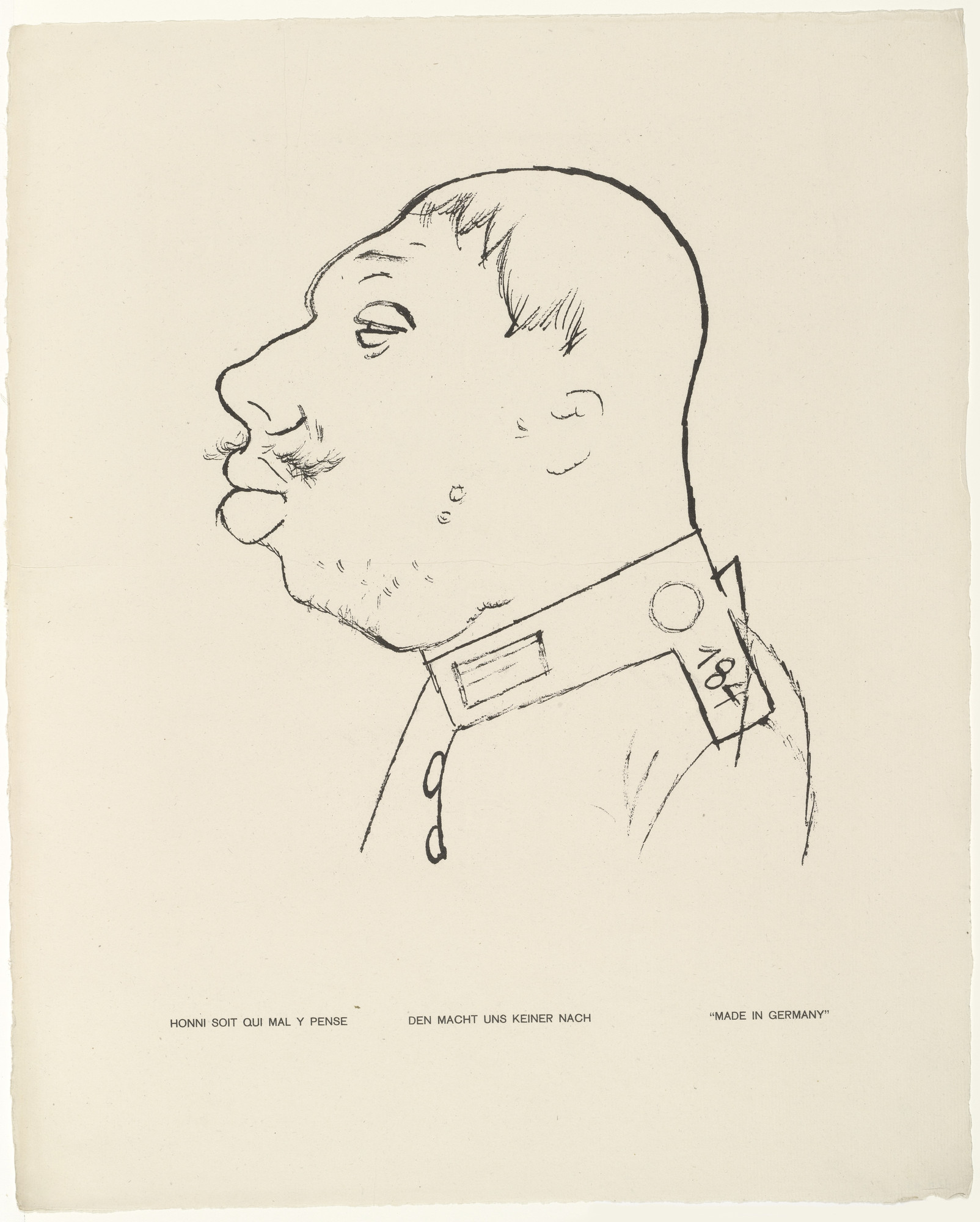 1918년 베를린에 정착한 그로스는 베를린 다다 운동의 창립 멤버로 활동했다. 그는 다다이즘의 반예술적 정신을 받아들여, 바이마르 공화국의 부르주아 계층과 기득권 세력을 신랄하게 비판하는 풍자적인 그림을 다수 제작했다.[38]