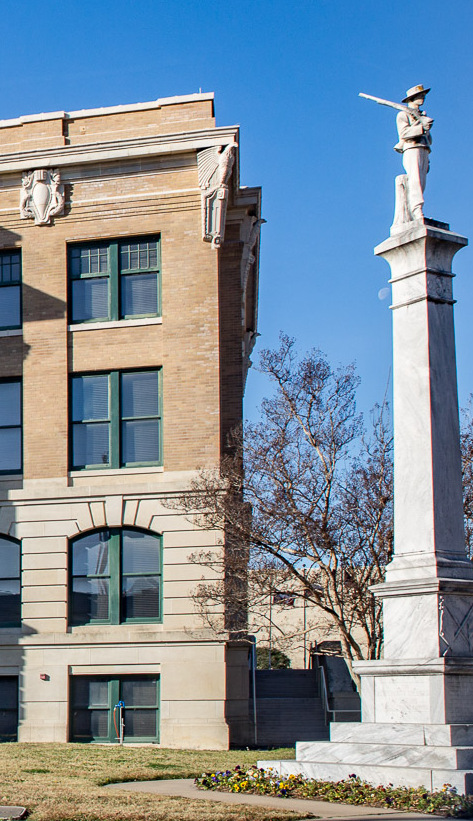 1911년에는 남부 연합 군인 동상이 올려진 기념비가 청사 밖 잔디밭에 세워졌다. 기념비 옆 명판에는 "어떤 나라도 이토록 백옥같이 아름답게 일어서지 못했고, 어떤 나라도 이토록 죄 없이 멸망하지 않았다"라고 쓰여 있으며, 이는 남부 연합의 잃어버린 대의를 가리킨다.[12] 2020년 조지 플로이드 사망 사건 이후, 다른 곳에서 남부 연합 기념물 철거가 이뤄졌지만, 카운티 위원들은 청사의 남부 연합 기념비를 유지하기로 투표했다.[13][14]