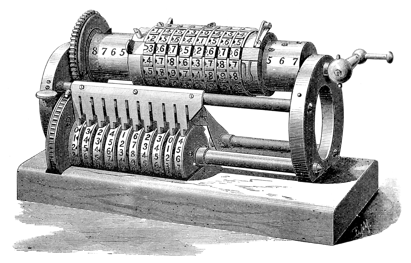 18세기에는 폴레니가 최초의 완전한 기능적 계산 시계와 네 가지 연산 기계를 발명했다. 1834년 루이지 토르키는 최초의 직접 곱셈 기계를 발명했다. 19세기 산업혁명 시기에 제조 및 제작 공정이 개선되면서 소형화된 장치를 대량 생산할 수 있게 되었다. 1820년 발명된 아리트모미터는 1851년 덧셈기로 출시되어 최초의 상업적 성공을 거두었고, 1890년까지 약 2,500대가 판매되었다.