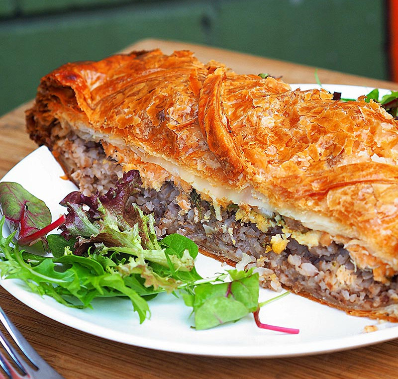 민스 파이, 비프 웰링턴, 셰퍼드 파이, 스코치 파이, 스테이크 앤드 키드니 파이는 영국의 고기 파이이다. 브라이디는 스코틀랜드의 고기 파이이다. 패스티는 콘월의 고기 파이이다. -- 리하피라카는 핀란드의 고기 파이이다. 쿠르니크, 쿨레뱌카, 패래매시, 피로시키는 러시아의 고기 파이이다. 키비나스는 리투아니아의 고기 파이이다. -- 프드즌은 오세티야의 고기 파이이다. -- 사르부르마는 우크라이나의 고기 파이이다. 크레아토피타는 그리스의 고기 파이로, 다진 소고기, 양파, 페타 치즈가 들어가며 필로 반죽으로 감싸진다.3. 3. 아메리카