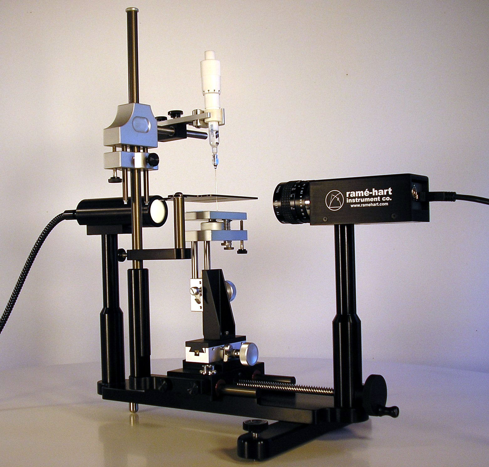 • 표면 과학: 접촉각 고니오미터는 정적 접촉각, 전진 및 후퇴 접촉각, 때로는 표면 장력을 측정하는 기기이다.