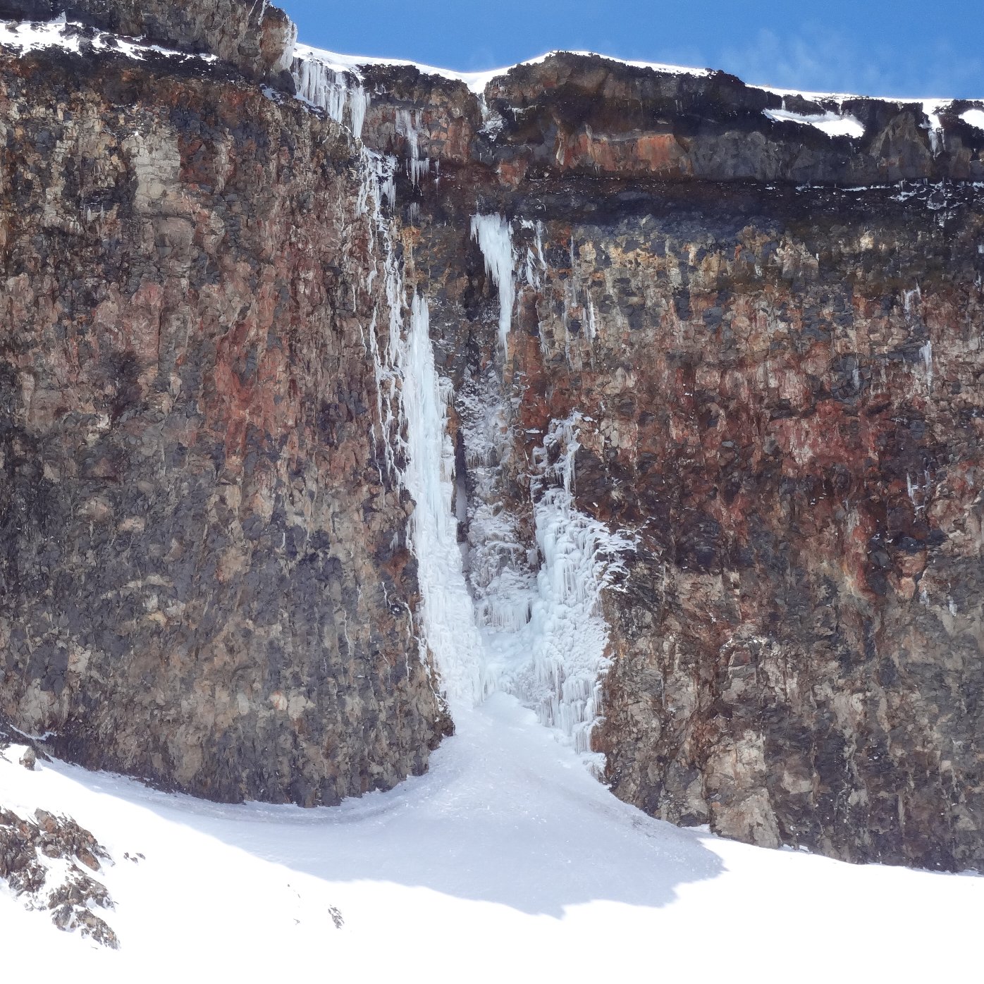 폭설 지대에서는 길이가 수 미터에 달하며, 땅에 닿는 것도 볼 수 있다. 폭포가 얼어붙어 거대한 고드름 군락이 되기도 한다('''빙폭'''(氷瀑)).