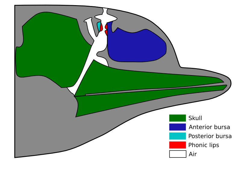 2004년에 컴퓨터 단층 촬영 및 단일 광자 방출 컴퓨터 단층 촬영 스캔을 사용한 분석에 따르면, 적어도 큰돌고래의 경우에는 폐에서 비강 복합체로 공기가 공급될 수 있으며, 따라서 돌고래가 폐에서 공기를 추가할 수 있는 한 소리 생성 과정을 계속할 수 있다.[32]