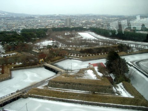 1854년 미일 화친 조약에 따라 하코다테 항이 개항되면서, 북방 방위와 관청 이전 문제가 대두되었다. 도쿠가와 이에사다의 명으로 요새가 축조되었고, 설계는 다케다 아야사부로가 맡았다. 고료카쿠는 유럽의 능보식[97] 축조 양식을 따라 별 모양으로 보루를 배치한 것이 특징이다. 전쟁 후 일반 시민들이 해자의 얼음을 채빙하여 판매하는 등 산업에도 기여했으며, 5000그루의 벚나무가 심어져 홋카이도를 대표하는 벚꽃 명소로 자리 잡았다.