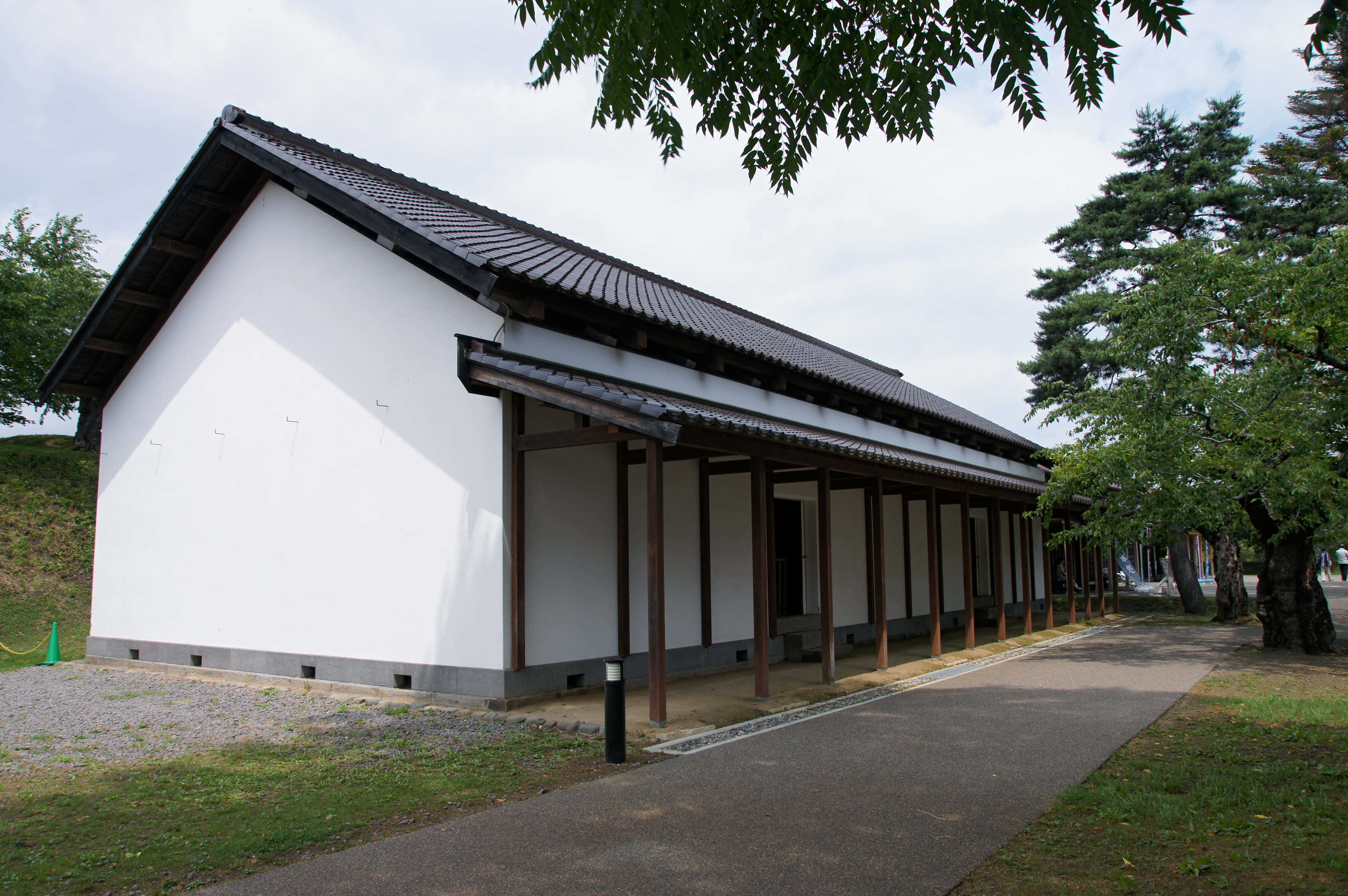정문 앞에는 높이 약 16.5미터의 북루가 설치되었지만, 하코다테 전쟁에서 고테쓰의 함포 사격을 받았을 때 조준점이 되었다고 생각한 구 막부군이 당황하여 베어 쓰러뜨렸다.[75]