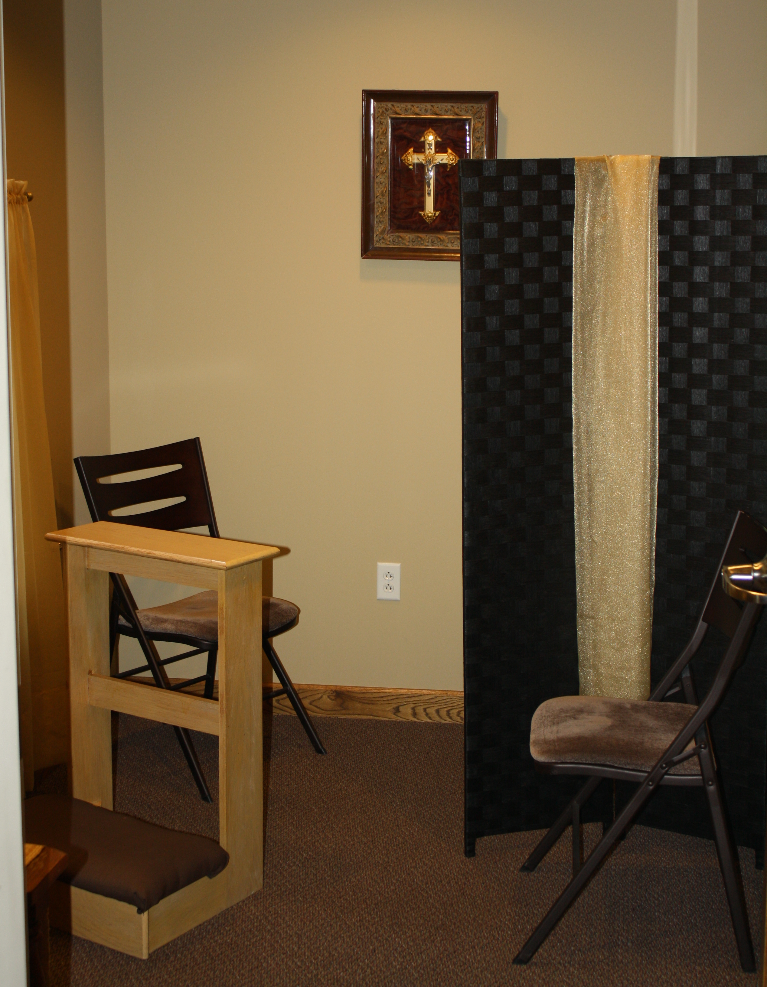가톨릭 교회에서 고해성사는 주로 특별히 제작된 고해소에서 이루어진다. 제2차 바티칸 공의회 이후, 대부분의 고해소에는 칸막이 뒤에 무릎을 꿇는 방식 외에도 사제를 마주보고 앉을 수 있는 선택지가 추가되었다. 그러나 익명성을 보장하기 위해 사제와 참회자를 분리하는 불투명한 스크린 설치는 여전히 필요하다.[25]