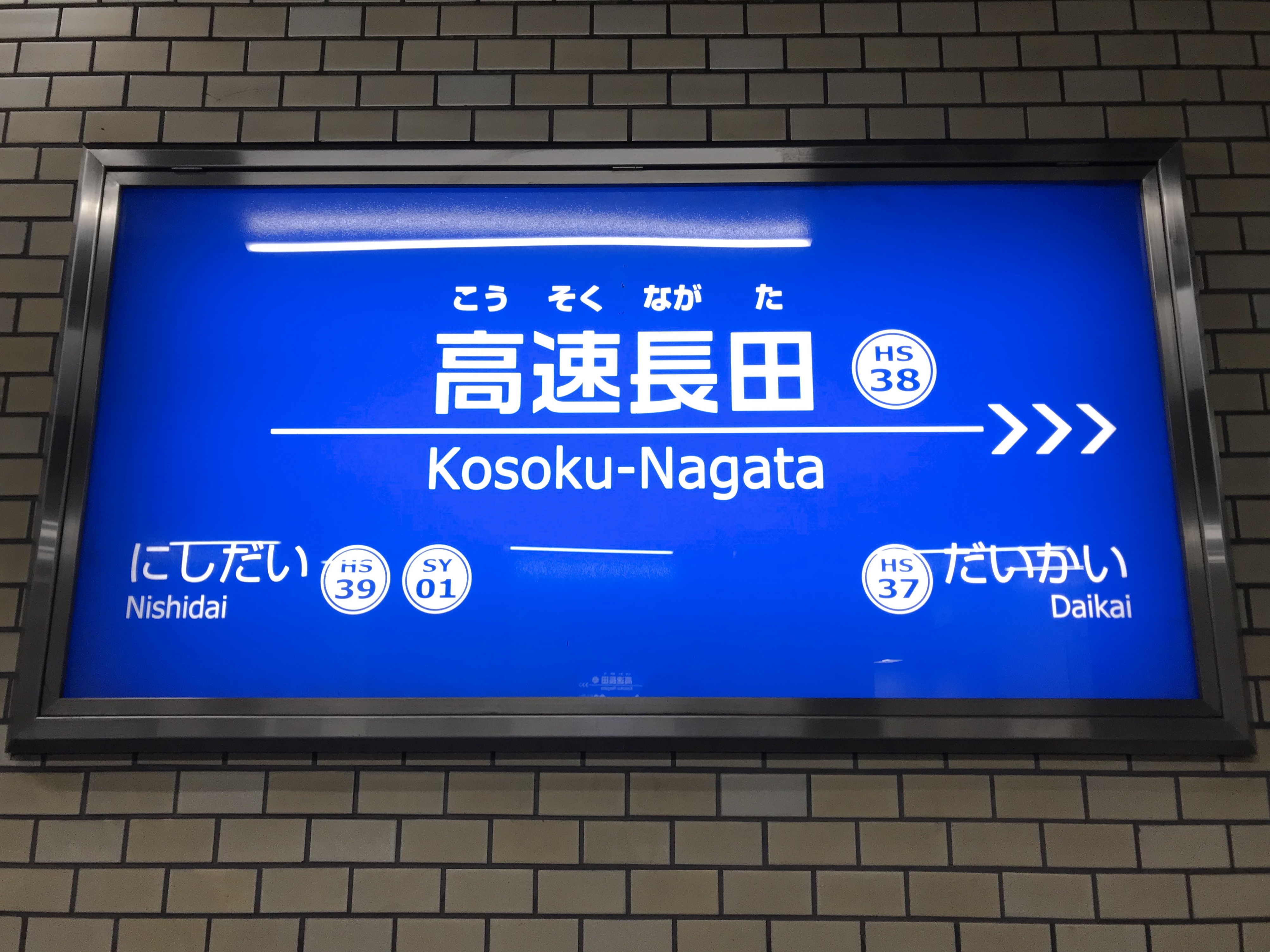 :: 다이카이역 (HS 37) - '''고속 나가타''' (HS 38) - 니시다이역 (HS 39)