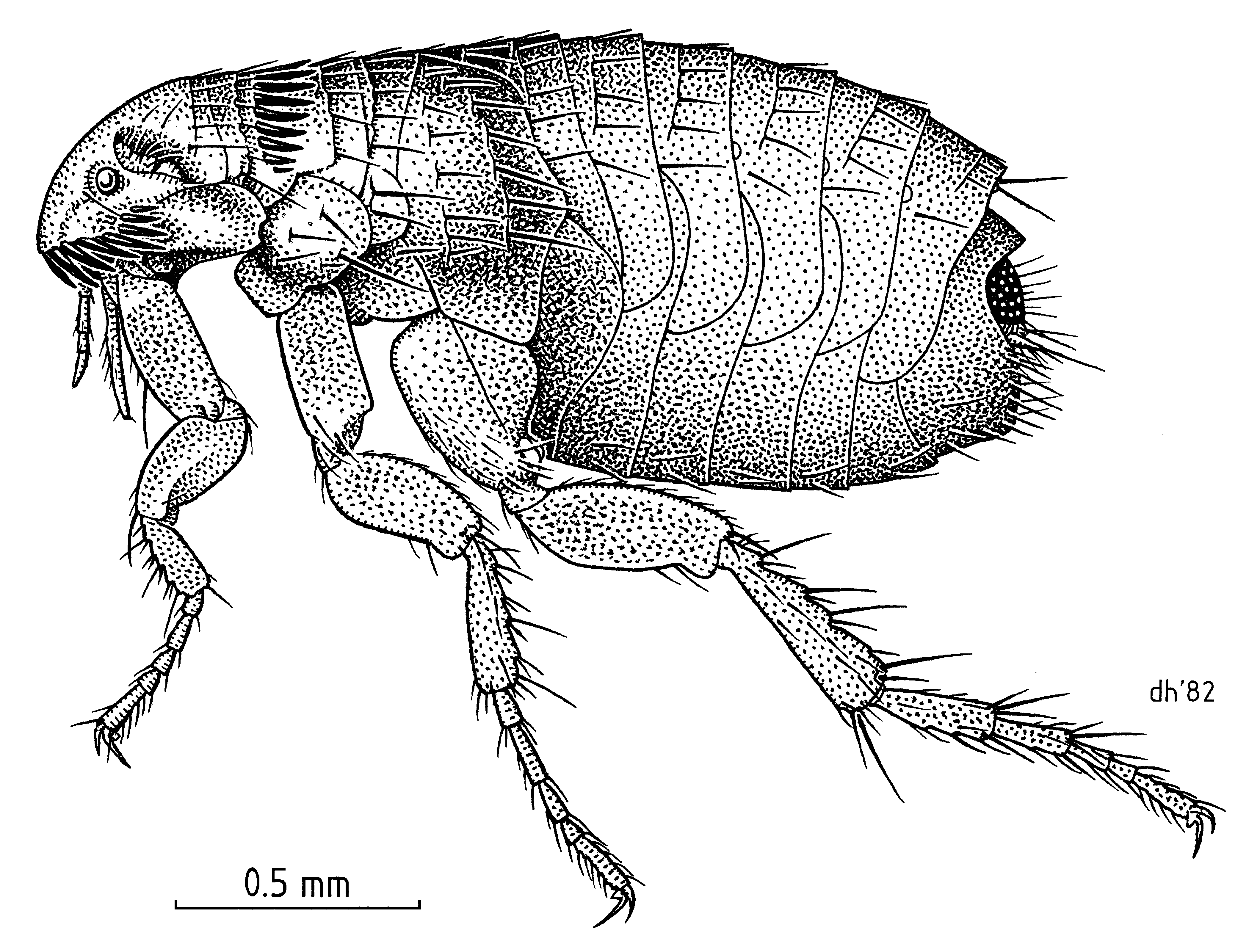 사람벼룩(*Pulex irritans*)은 전 세계에 분포하며 사람을 포함한 다양한 포유류와 조류에 기생하여 피를 섭취하는 완전변태 곤충으로, 페스트균을 전파하거나 오이붙이촌충의 중간 숙주 역할을 하기도 한다. - 고양이 위생학 - 중성화 수술