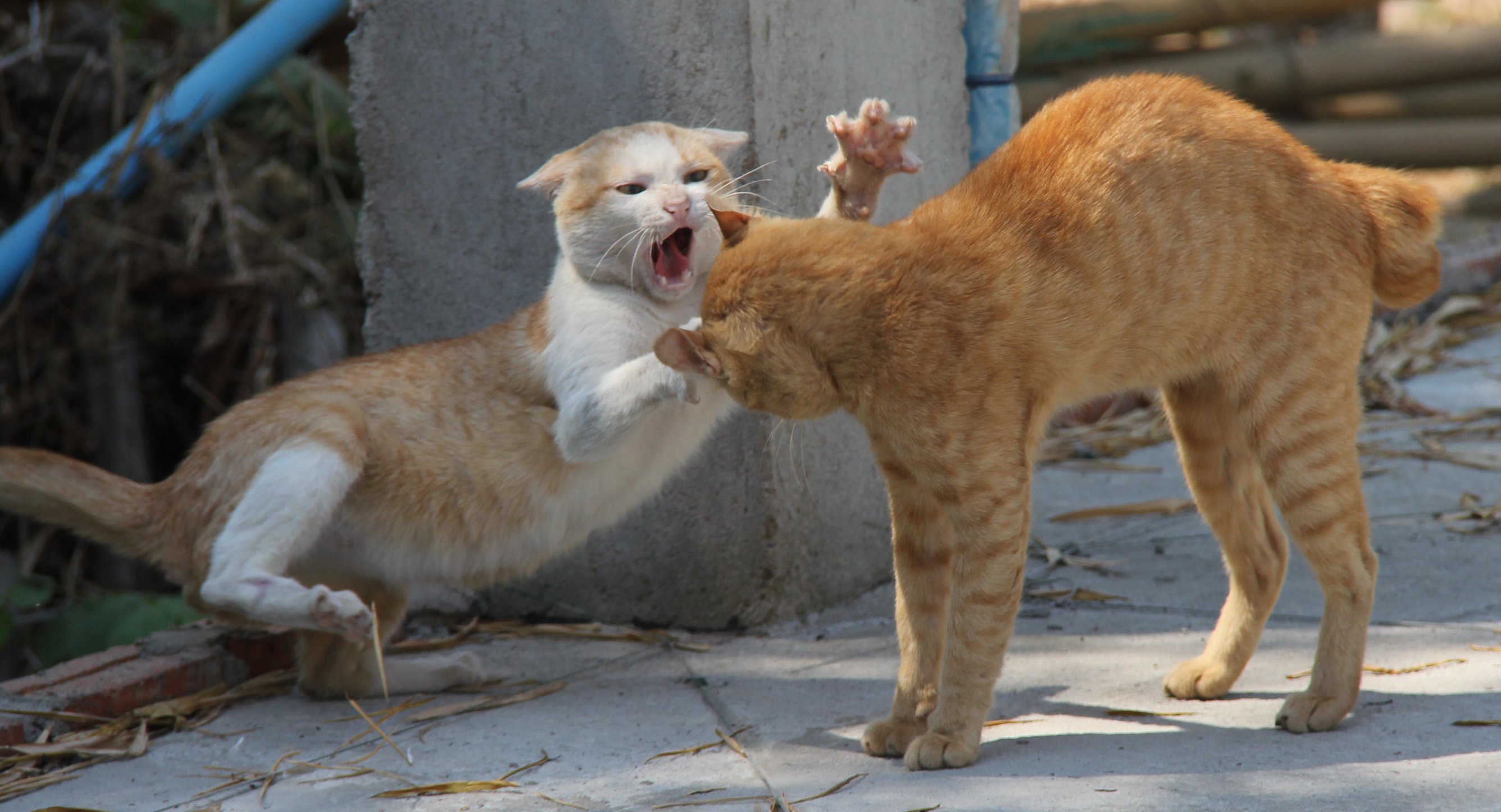 펀치 | 고양이는 앞발로 다른 고양이를 가볍게 쳐서 자신의 의사를 전달한다. 펀치는 종종 장난이나 놀이의 일부로 나타나지만, 때로는 공격적인 의사를 표현하는 데 사용될 수도 있다. |