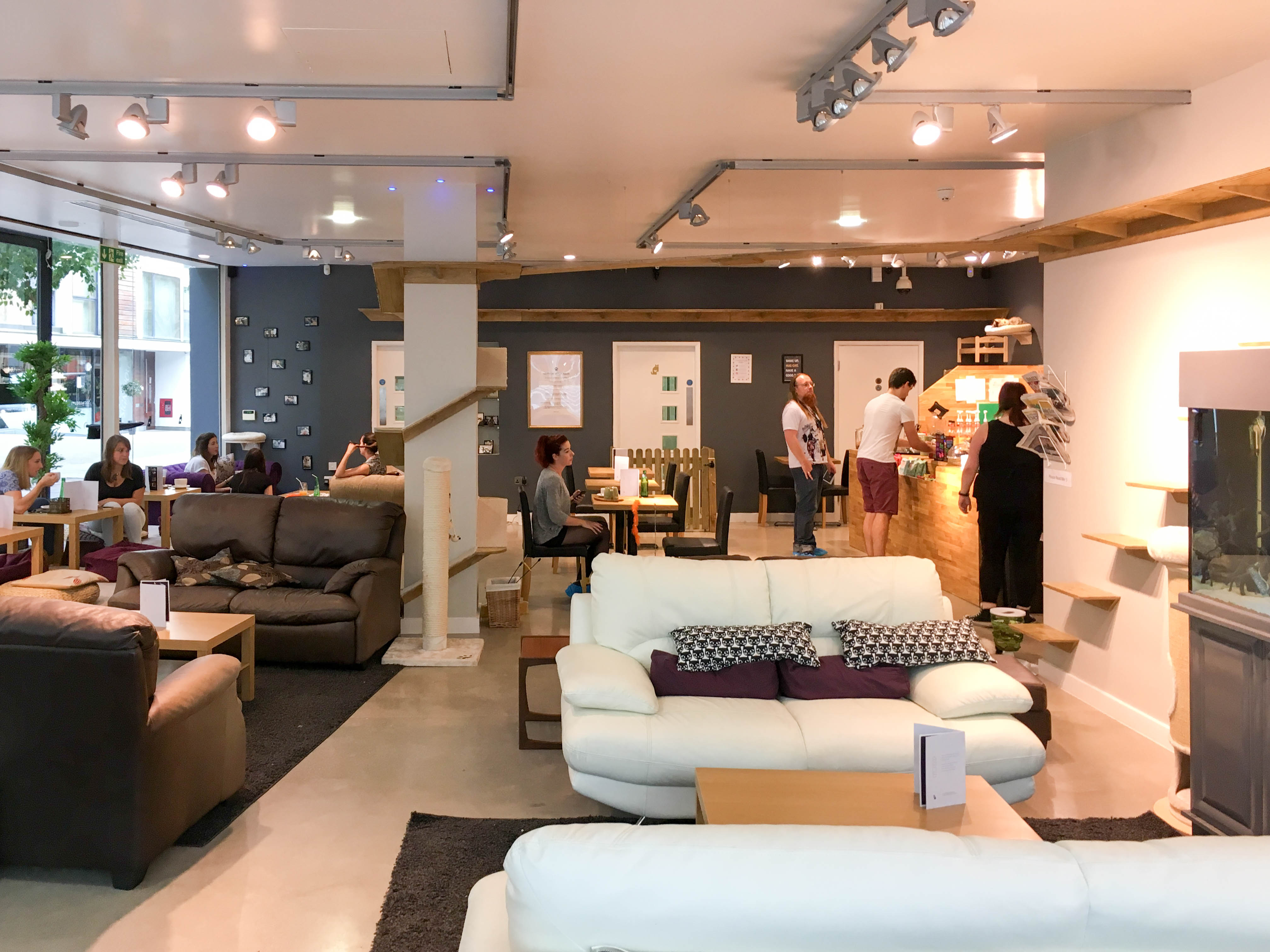 영국 최초의 고양이 카페는 2013년 6월 토트네스에 문을 열었지만[62], 2014년 5월에 문을 닫았다.
