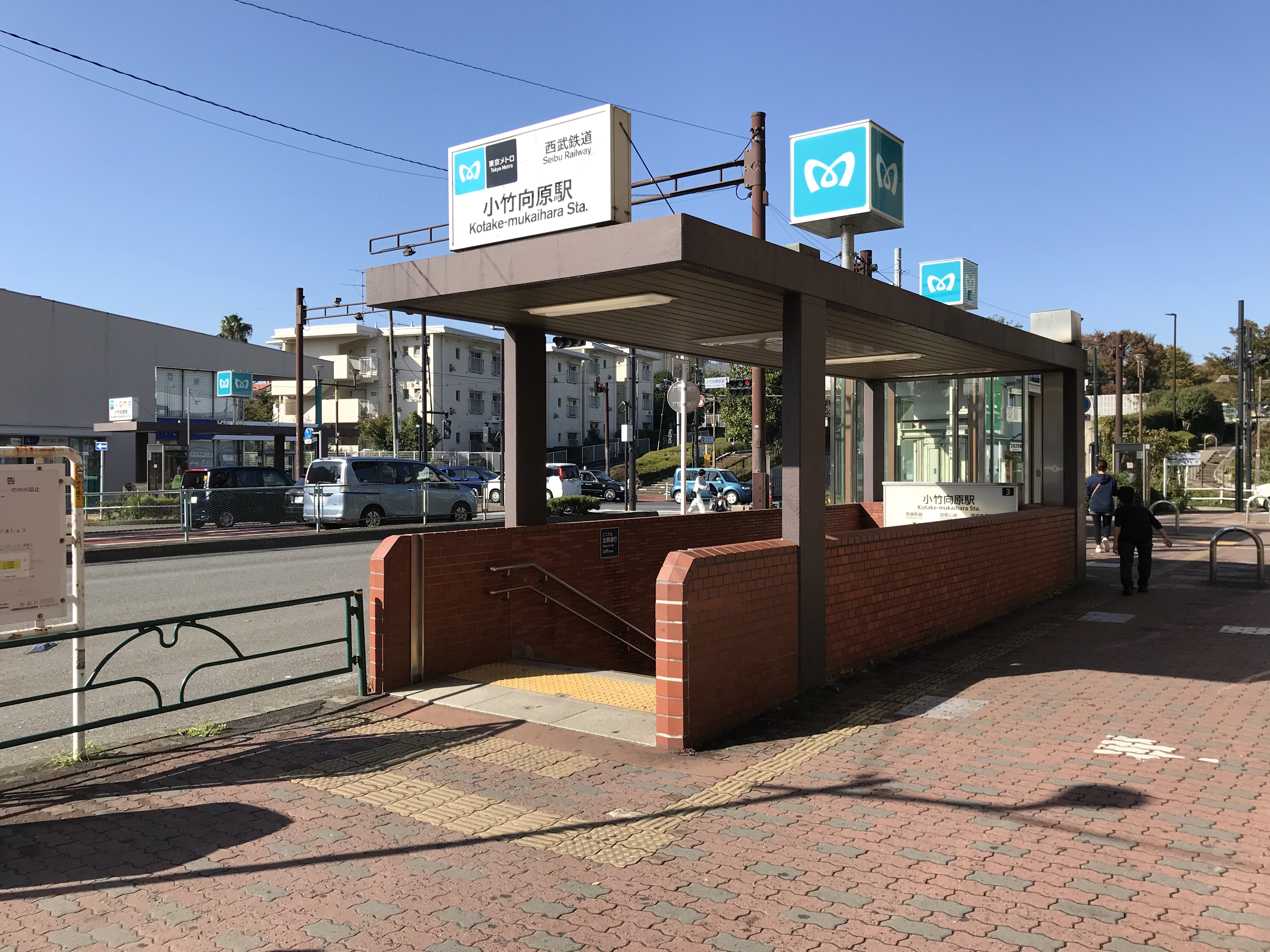 역 이름은 역이 위치한 네리마구 고타케초(小竹町|고타케초일본어)와 이타바시구 무카이하라(向原|무카이하라일본어)에서 유래했다.