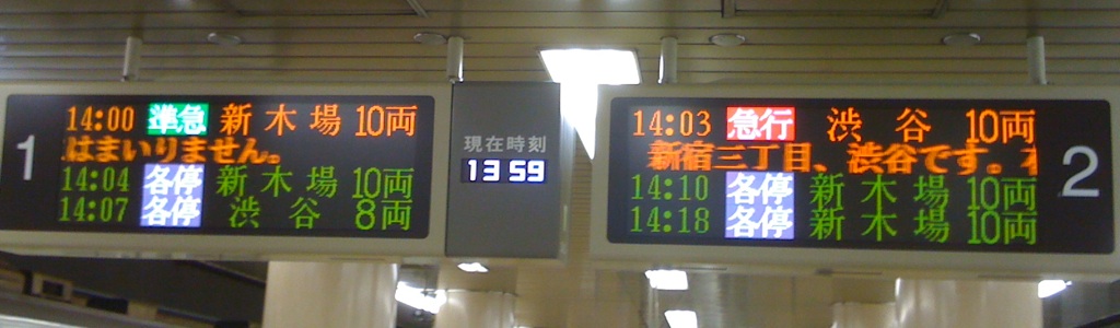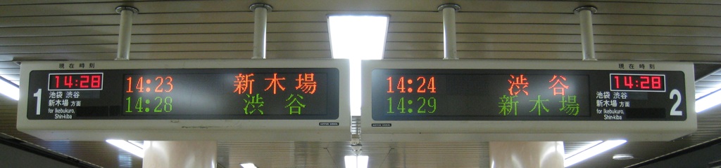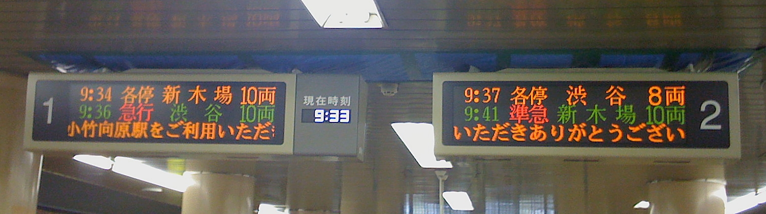 ![]() | 이케부쿠로・히가시신주쿠・시부야 방면 (도큐 도요코선, 미나토미라이선 직결) 요코하마・모토마치·주카가이 방면 (도큐 신요코하마선, 소테츠 신요코하마선, 소테츠 본선 직결) 신요코하마・에비나 방면 (도큐 신요코하마선, 소테츠 신요코하마선, 소테츠 이즈미노선 직결) 신요코하마・쇼난다이 방면 | |