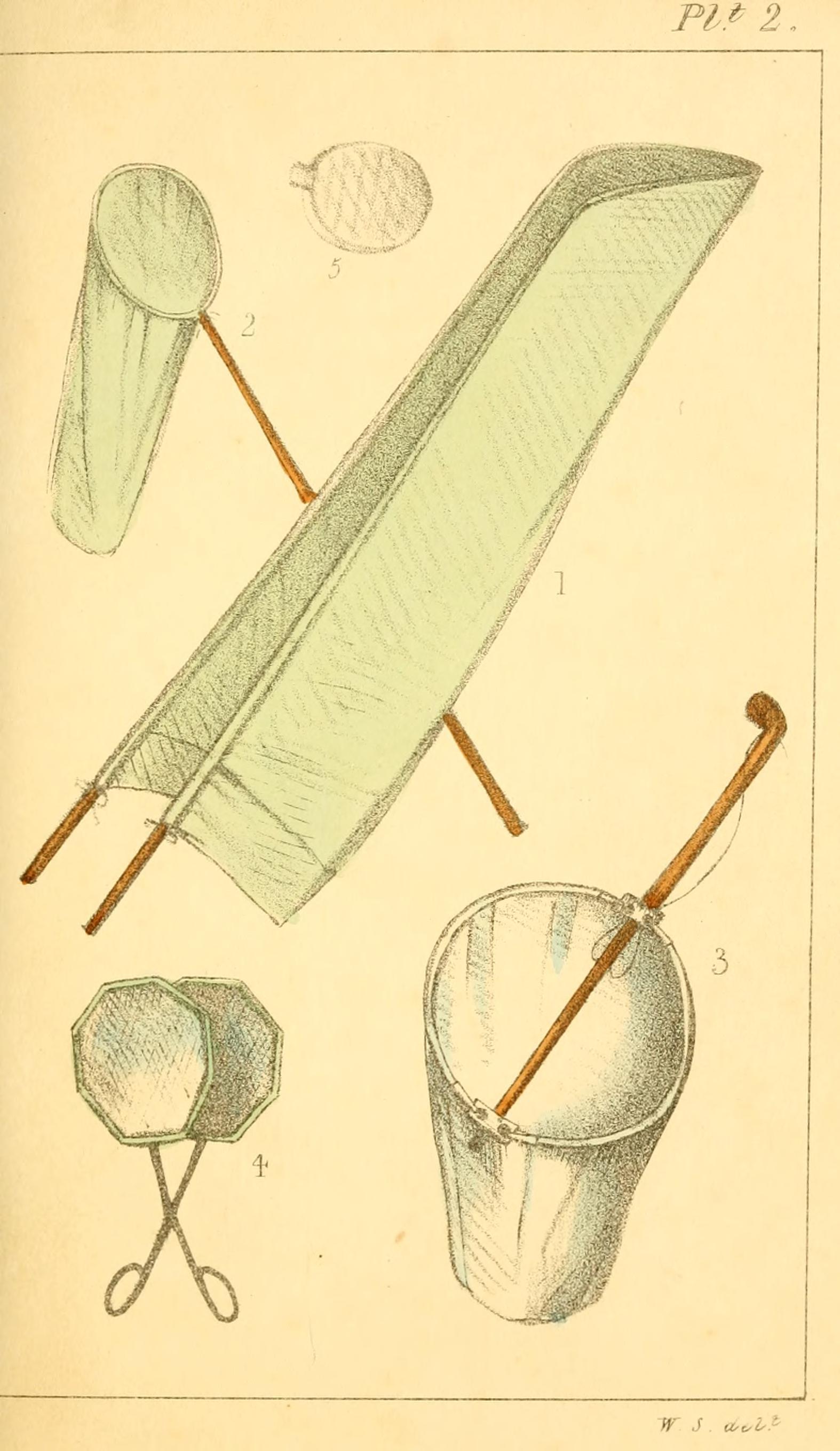 Fig. 1 A clap net、Fig. 2 A water net、Fig. 3 A sweeping net、Fig. 4 Forceps、Fig. 5 A ring net