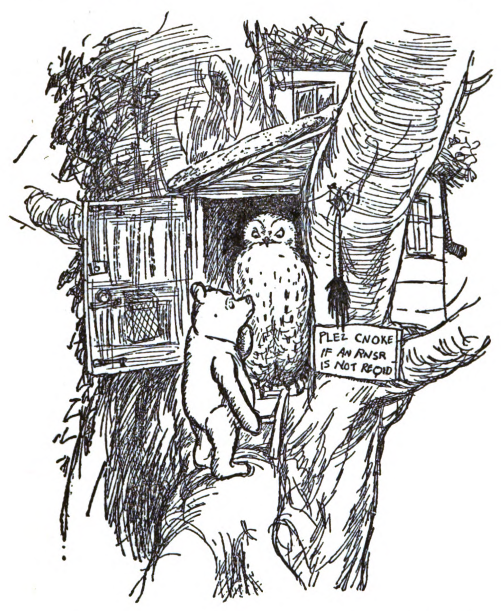 4장 | 이요르가 꼬리를 잃어버려 기분이 가라앉고, 푸가 찾아다닌 끝에 올빼미 집 현관의 초인종 줄에 달려 있는 것을 발견한다. |