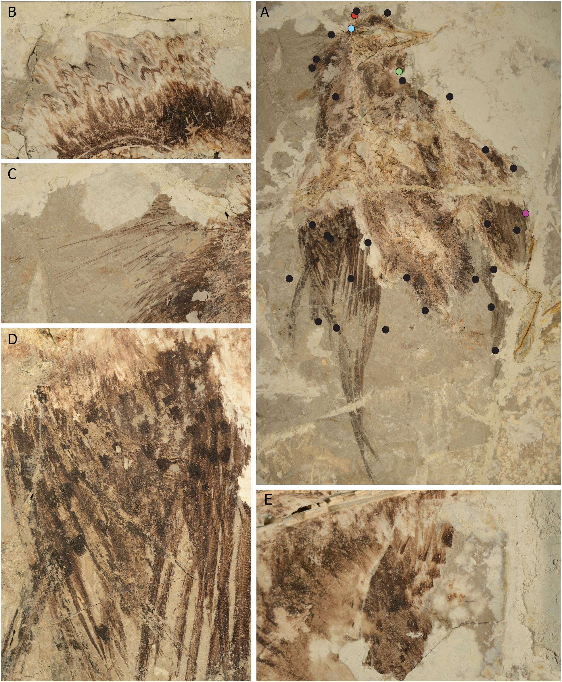 2018년 CUGB P1401 표본에 대한 연구는 ''공자새''의 날개, 목, 볏에 짙은 반점이 존재함을 나타냈다.[28]