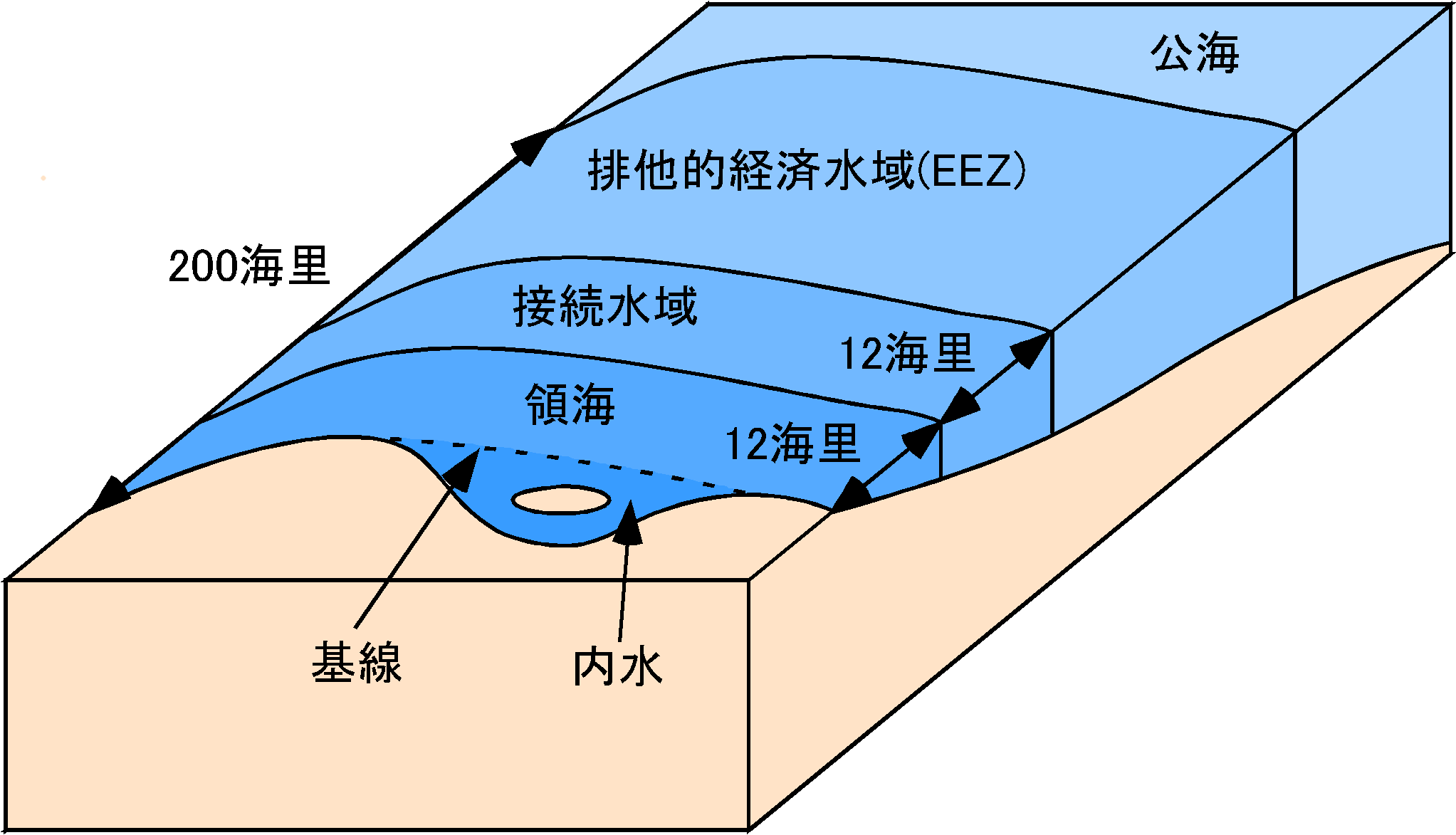 위 표는 각 국가의 관할권과 주권이 미치는 한계를 나타낸다. 내수와 영해는 연안국의 완전한 주권이 미치는 영역이며, 배타적 경제 수역(EEZ)은 연안국이 자원 관리 및 탐사에 대한 배타적 권리를 가지지만, 선박의 자유로운 항해는 허용되는 구역이다. 공해는 모든 국가에게 개방된 해역으로, 특정 국가의 주권이 미치지 않는다. 대륙붕은 연안국이 해저 자원 개발에 대한 권리를 가지는 해저 지역이다.