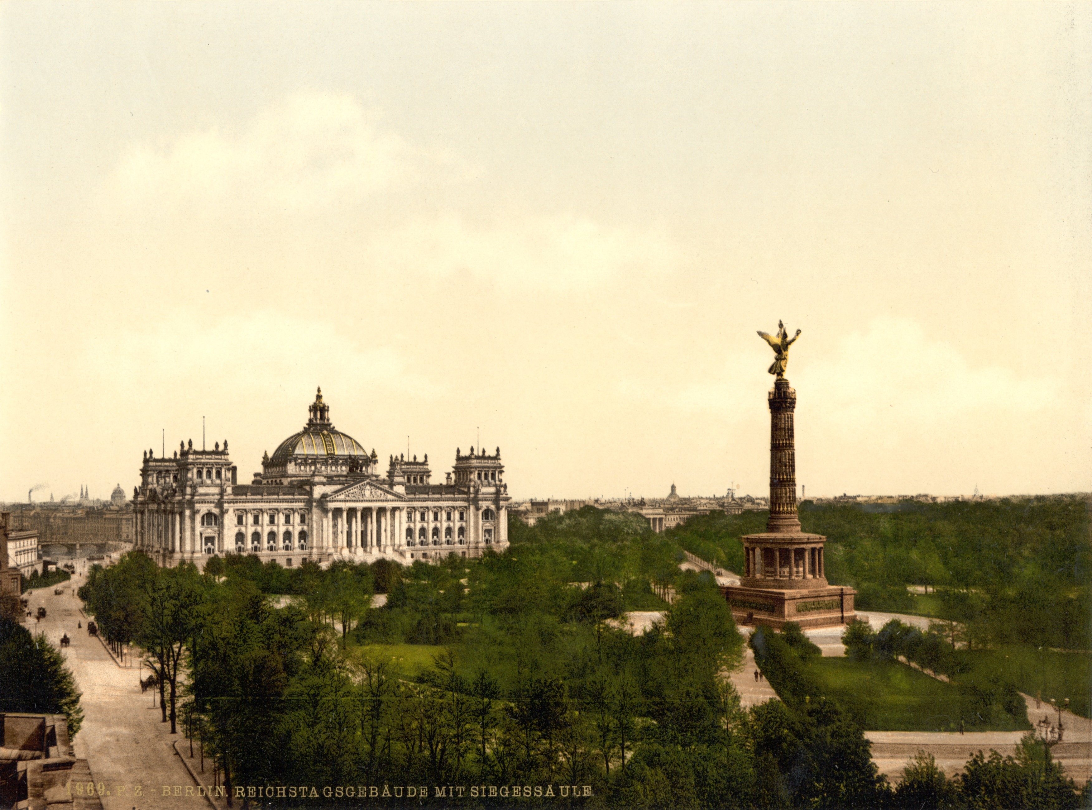 1873년, 새롭게 조성된 지게스알레 대로의 끝이자 광장 중앙에 승리 기념탑이 세워졌다. 광장 동쪽 끝에는 폴란드-프로이센 백작 아타나지 라친스키의 궁전이 있었으며, 1884년부터 1894년까지 이 궁전 자리에 국회의사당 건물이 건설되었다.