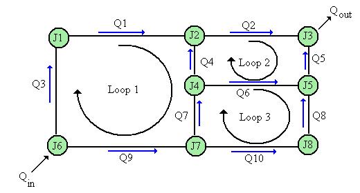 이러한 네트워크를 해결하기 위한 고전적인 접근 방식은 하디 크로스 방법을 사용하는 것이다.