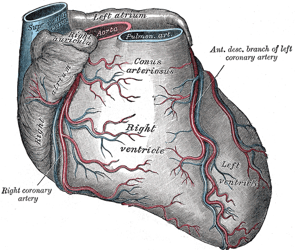 심장으로 가는 혈류 제한은 심장 근육 세포의 허혈(산소 부족)을 유발한다. 산소 부족으로 심장 근육 세포가 죽으면 심근 경색증(심장마비)이 발생한다. 심근경색은 심장 근육 손상, 괴사, 흉터를 남기지만 심장 근육 세포는 재생되지 않는다. 만성적인 관상동맥 협착은 일시적인 허혈을 유발해 심실 부정맥을 일으키고, 심실 세동으로 이어져 사망할 수 있다.[64]관상동맥 질환은 보통 심장 근육에 혈액을 공급하는 관상동맥 내막에 동맥경화증이 발생하면서 시작된다. 동맥경화로 내막이 굳고 뻣뻣해지며 칼슘, 지방, 비정상적인 염증 세포가 쌓여 죽상경화반을 형성한다. 혈관 근육층에 칼슘 인산염(하이드록시아파타이트)이 침착되면 동맥이 경화되고 관상 동맥경화증 초기 단계를 유발한다. 죽상경화반은 동맥 통로로 돌출되어 혈류를 부분적으로 막는다. 관상동맥 질환자는 죽상경화반이 한두 개만 있거나, 관상동맥 전체에 수십 개가 있기도 하다. 더 심각한 형태는 관상동맥이 3개월 이상 완전히 막히는 '만성 완전 폐쇄'(CTO)이다.[65]