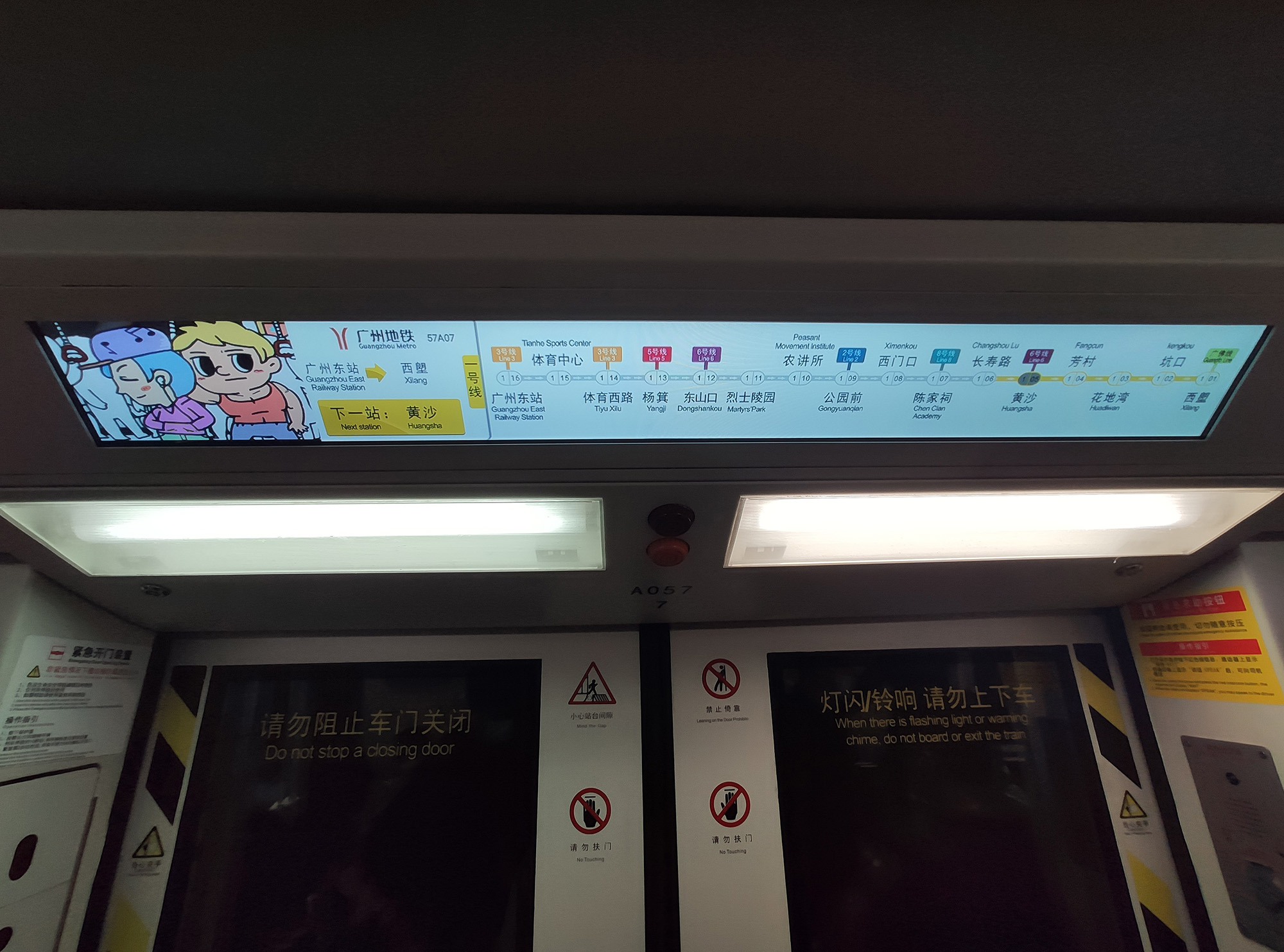 광저우 지하철 노선 - 광저우 지하철 5호선 광저우 지하철 5호선은 광저우 도시철도의 노선으로, 자오커우역에서 황푸 신항역까지 30개 역을 연결하는 41.7km 구간을 운행하며, 높은 혼잡률로 출퇴근 시간대에는 추가 열차 운행 및 승객 입장이 관리된다.