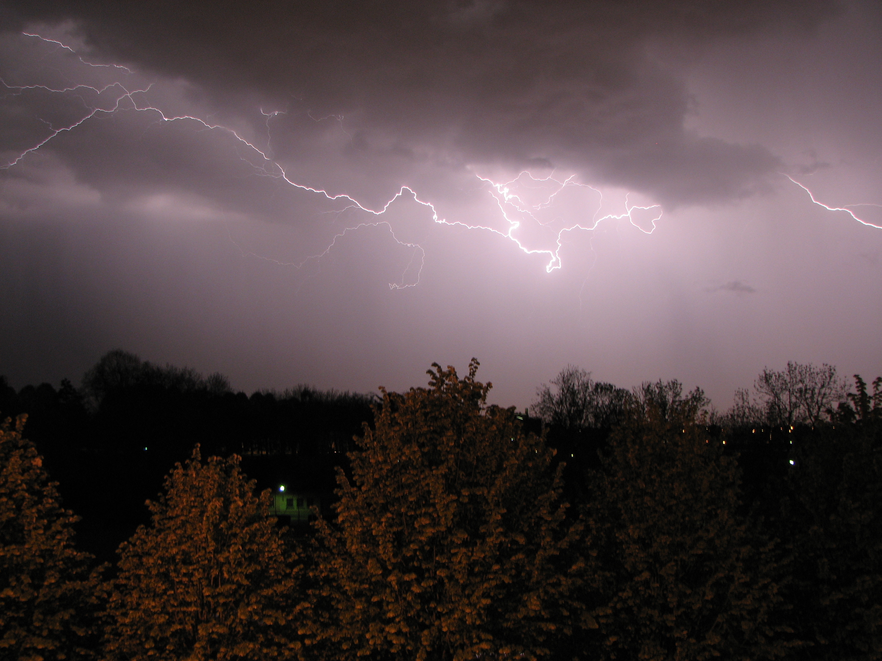 뇌우 | -- | 과거 10분 이내에, 뇌전 또는 천둥 소리가 있었던 상태. | ![]() |