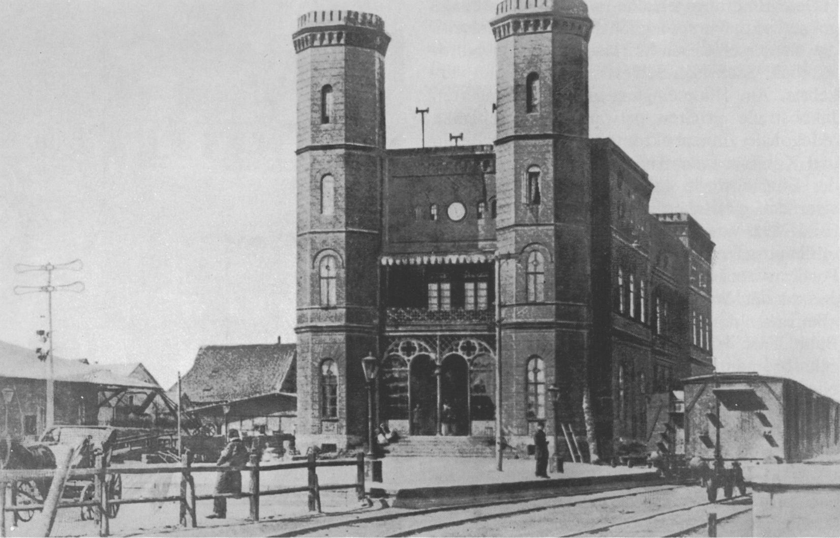 두 개의 가느다란 탑이 정문에 건설되었으며, 베란다로 날씨로부터 보호되었다. 입구 홀에서 매표소와 수하물 사무실로 연결되는 통로가 있었다. 이 홀은 대기실과 기차로 연결되는 통로와 연결되었다.