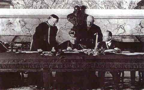 조약 서명 직후 무솔리니와 교회의 관계는 다시 악화되었다.[7] 무솔리니는 가톨릭교를 "본래 팔레스타인에서 로마 제국의 조직에 편입되어 확산된 작은 종파"로 언급했다.[7] 그는 로마 가톨릭 교회로부터 파문 직전까지 갔다고 전해진다.[7]