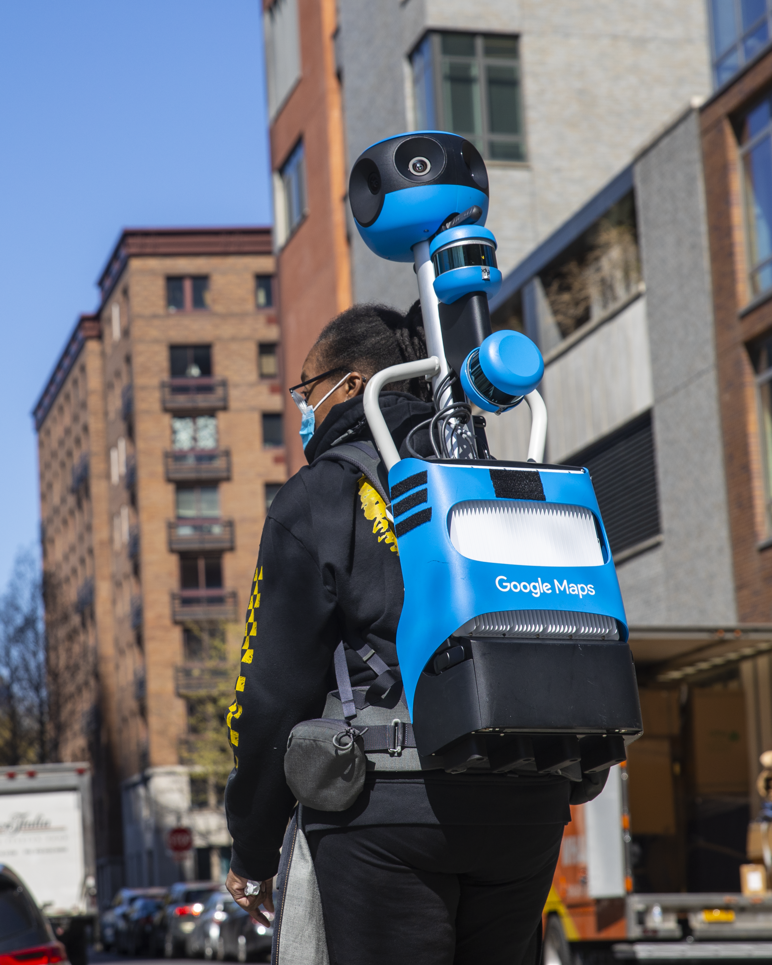 - 트레커 (도보): 약 20kg의 등짐식 촬영 장비를 사람이 짊어지고 등산로 등을 걸으며 촬영한다. 주로 자원 봉사자가 촬영하며, 구글이 희망자에게 장비를 대여한다.[89]