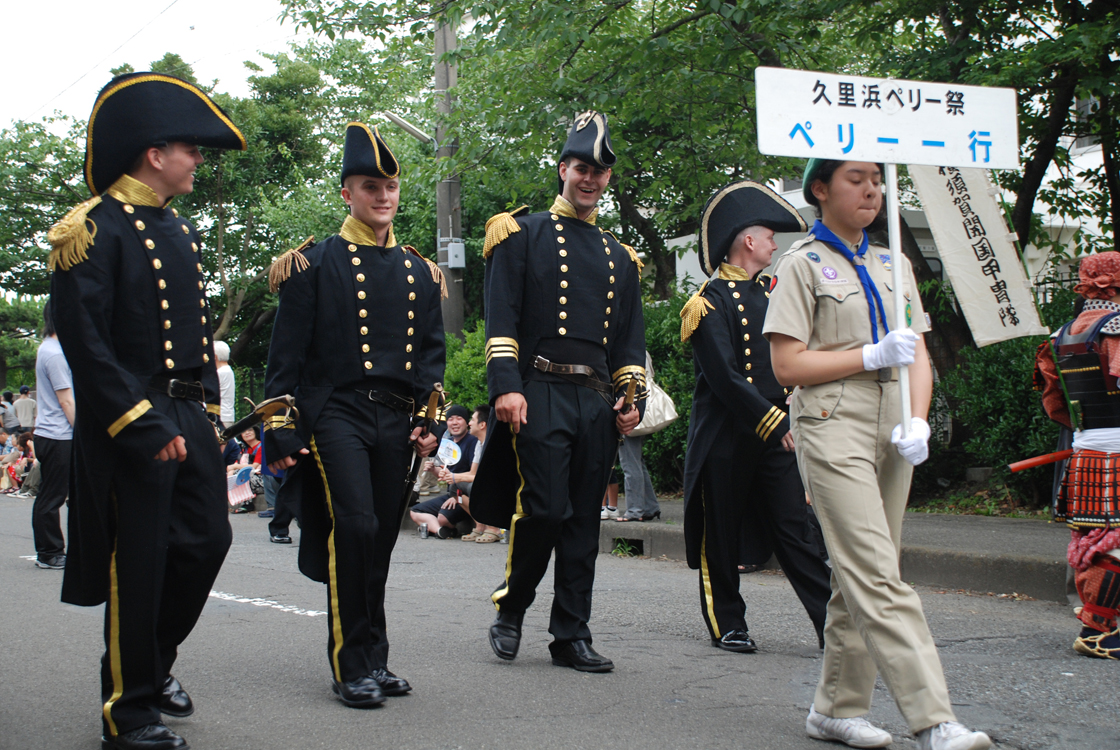 1853년(가에이 6년) 6월 3일, 미국의 페리 제독이 이끄는 함대가 우라가 앞바다에 나타났다. 우라가 봉행과의 협상 끝에, 페리 함대의 육전대 약 300명이 구리하마에 상륙하여 미국 대통령의 친서를 전달하는 장소가 되었다. 당시 구리하마는 작은 어촌이었지만, 곶을 사이에 두고 우라가와 가까우면서도 많은 인원이 모일 수 있는 넓은 해변이 있어 상륙지로 선택되었다.