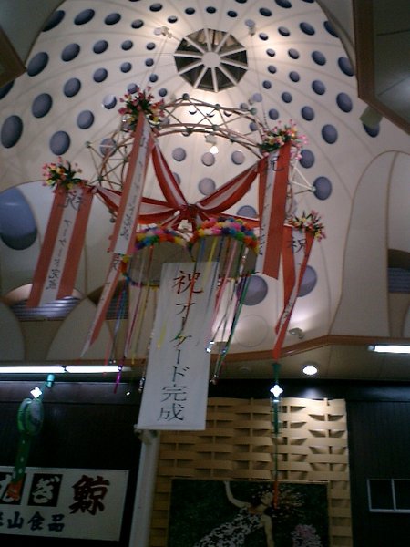 • 매달린 끈으로 상부를 천장에 부착하고, 하부의 끈을 당기면 고무 멈춤쇠가 풀려 구체가 열리면서 안의 늘어진 막(「축 ○○○○○」등)과 종이 테이프가 늘어지고, 풍선이나 종이 조각 등이 흩날린다.[1]