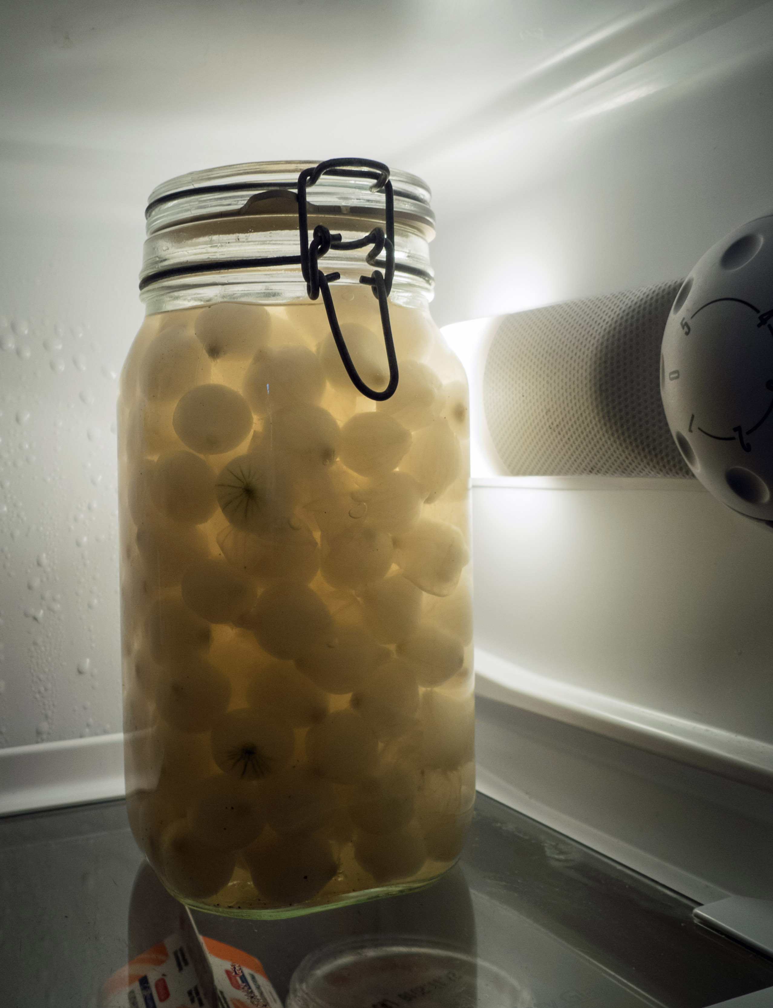 절임용으로 재배되는 일반 양파의 흰색 품종에는 '크리스탈 왁스'[12]와 '화이트 버뮤다'가 있다.[6] 맛이 더 순한 적색 품종도 있다.[13] 씨앗에서 재배하여 절임용 작은 구근을 생산하는 일반 양파는 90일 후에 수확할 수 있다.[6] 신선한 상태에서는 시원하고 건조하며 어두운 곳에서 최대 한 달까지 보관할 수 있다.[13][14]