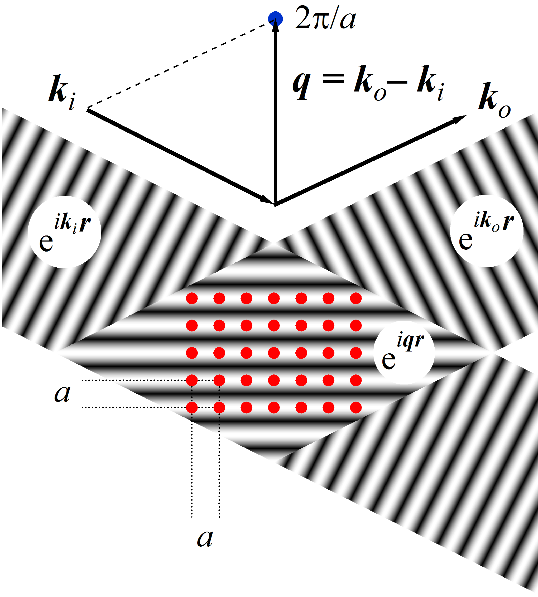 결정에서 구성 입자는 주기적으로 배열되어 병진 대칭을 이루며, 격자를 형성한다. 결정 구조는 모든 격자점에 위치한 원자 그룹인 기저를 가진 브라베 격자로 설명할 수 있다. 즉, [결정 구조] = [격자] [기저]이다. 격자가 무한하고 완전히 규칙적이면 시스템은 완벽한 결정이다. 이러한 시스템의 경우, 에 대한 특정 값 집합만이 산란을 제공할 수 있으며, 다른 모든 값에 대한 산란 진폭은 0이다. 이 값 집합은 실제 공간 결정 격자의 푸리에 변환인 역격자를 형성한다.
