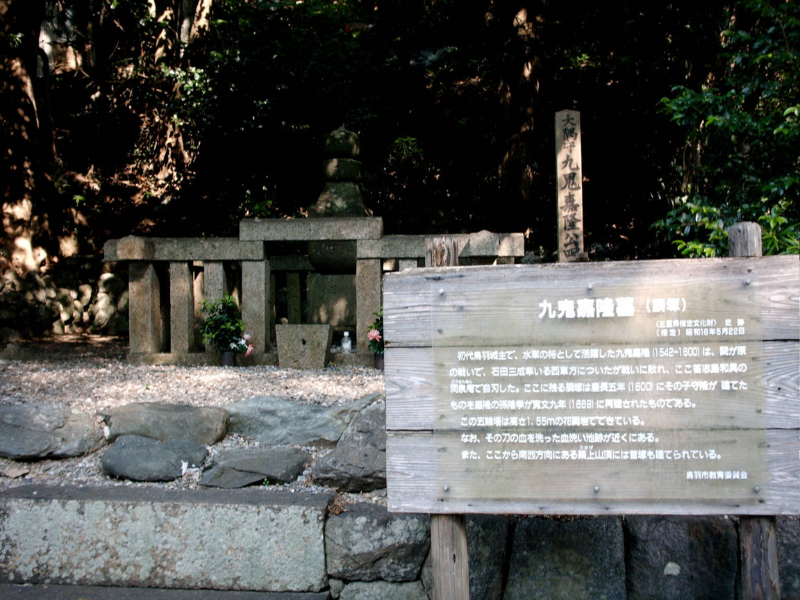 도바 쪽 산록에 있는 조안지라는 절이 구키 요시타카의 보리사(菩提寺, 조상의 위패를 모신 절)가 되어 있으며,[1] 모리타카가 요시타카의 보리(菩提, 깨달음)를 기리기 위해 기증한 돌 등롱을 묘로 해석하거나, 혹은 묘 외에 아사쿠마산에서도 공양한 사실을 아사쿠마산에 묻었다고 혼동하는 경우가 있다.[1] 현재도 묘에 장사 지낸 후, 이 지역을 대표하는 영산인 아사쿠마산에 올라 금강증사 오쿠노인에 탑파를 세워 공양하는 풍습이 있으며, 오쿠노인 앞에 많은 탑파가 늘어서 있다.[1] 금강증사에는 구키 요시타카의 초상화(紙本著色九鬼嘉隆像)가 남아 중요문화재로 지정되어 있다.[1] 조안지에는 요시타카가 자결에 사용했다고 전해지는 단도 등이 남아 있다.[1]