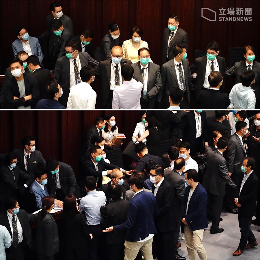 2020년 5월 8일, 수개월 동안 계속된 입법 교착 상태를 해소하기 위해, 2019년까지 내무위원회 주석을 역임했던 친중파 민주건항협진련맹 소속 스태리 리 의원이 주석 전용석을 물리적으로 점거했다.[44] 건제파 의원들과 경비원들은 민주파 의원들을 제지했고, 이 과정에서 몸싸움이 벌어져 최소 1명의 민주파 의원이 부상을 당했다. 스태리 리 의원은 민주파 의원들의 필리버스터로 인해 6개월 동안 주석이 선출되지 못한 비정상적인 상황을 이유로 자신이 의사를 진행할 수 있다고 주장했다.[44]