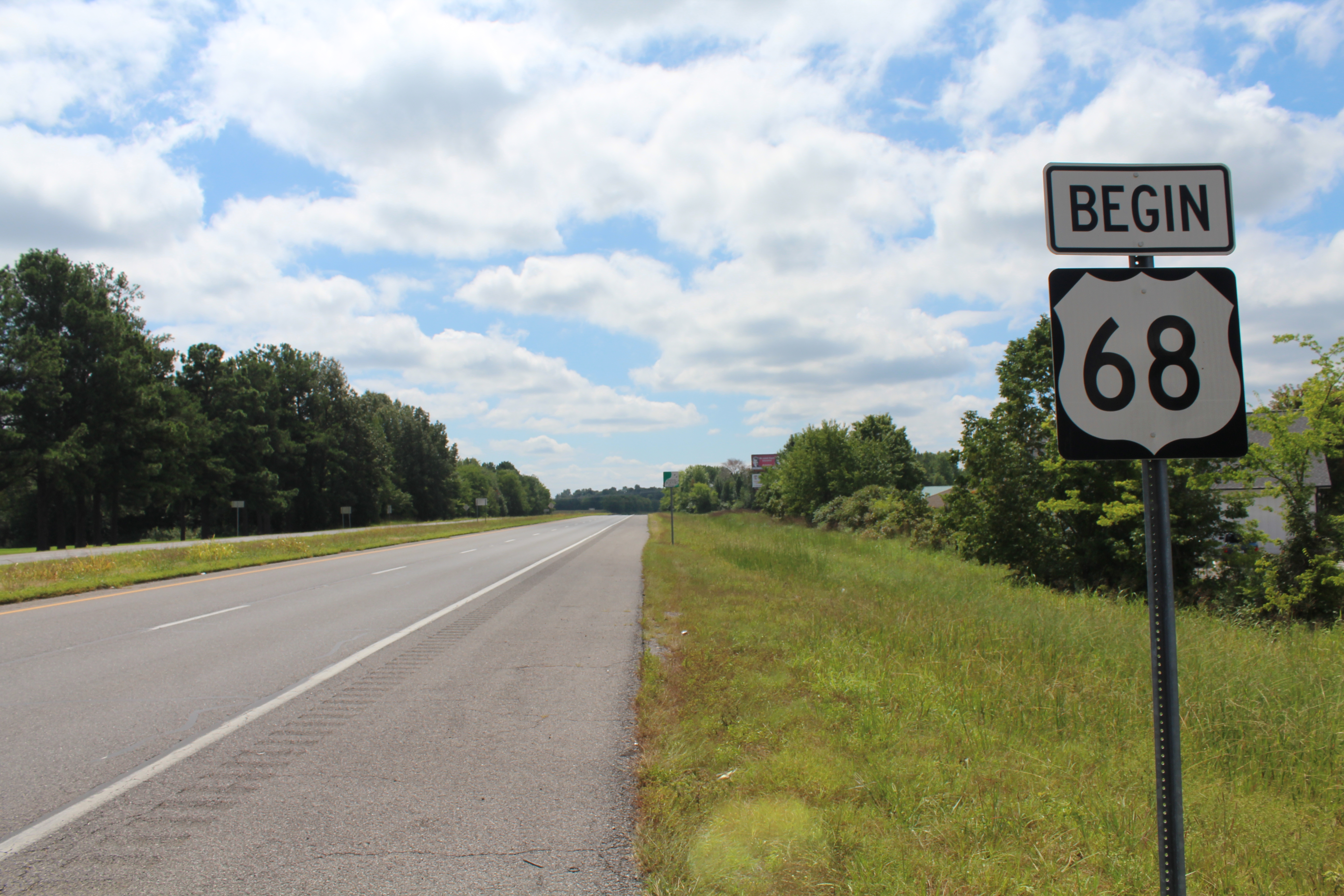 US 68은 켄터키주 전역에서 "경치 좋은 고속도로"로 지정되어 있으며, 리드랜드, 오로라, 캐디즈, 홉킨스빌, 엘크턴, 러셀빌, 오번, 볼링그린, 글래스고, 에드몬턴, 그린스버그, 캠벨스빌, 레바논, 페리빌, 해로드즈버그, 렉싱턴, 파리, 메이즈빌을 지나거나 근처를 통과한다.대부분의 노선은 숲이 우거지고 언덕이 많은 지형을 통과한다. US 68은 렉싱턴 시내를 통과하는 브로드웨이이며, 렉싱턴을 벗어나기 전에는 해로드즈버그 로드이다.