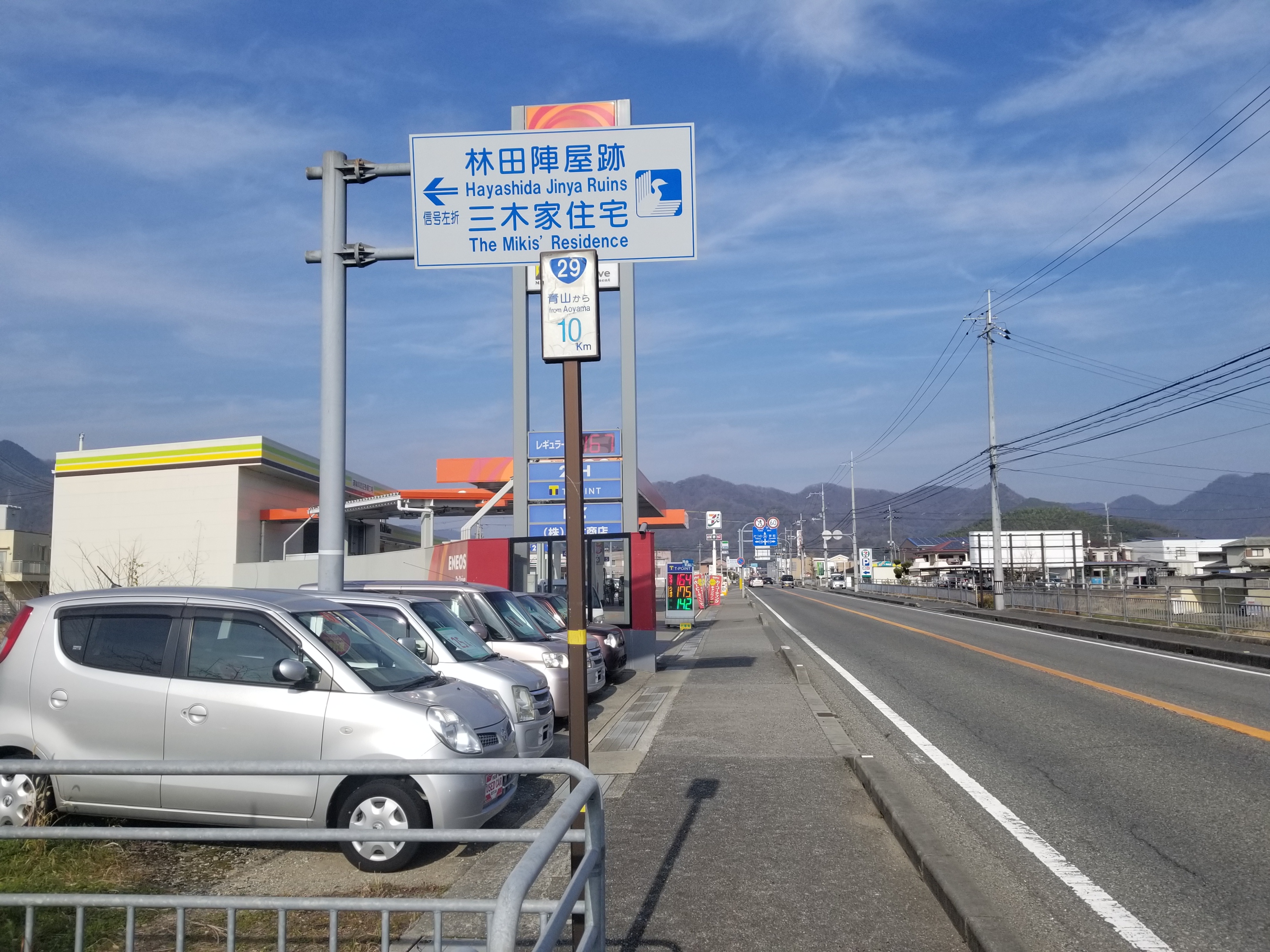 시모이세 램프 북쪽에서는, 킬로 포스트는 구도 시대의 것을 계속 사용하고 있다(히메지 서부 바이패스의 킬로 포스트와 연속되어 있지 않다)