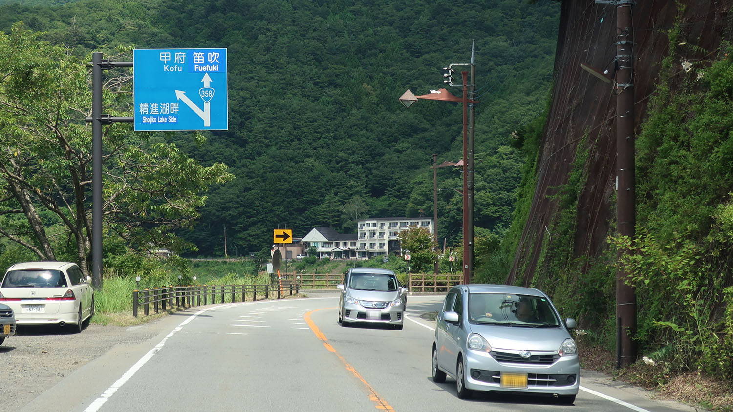 국도 제139호선 아카이케 교차로에서 이 노선으로 진입하면 바로 왼쪽에 정진호가 보이고, 한동안 호숫가를 따라 달리는 구간이 된다. 이 구간은 도로 폭은 확보되어 있지만, 설계 시기가 오래되어 곡률이 작은 급커브가 연속된다. 정진호 터널을 빠져나와 고후시 가미쿠이이시키 출장소 앞까지는 험준한 산악 구간으로, 2차선 도로지만 급경사와 급커브가 이어진다. 가미쿠이이시키 지구부터는 비교적 선형이 양호해지고, 우바구치 터널을 지나 내리막길을 따라가면 고후 분지에 이른다. 밤에는 고후 분지의 야경을 볼 수 있다.