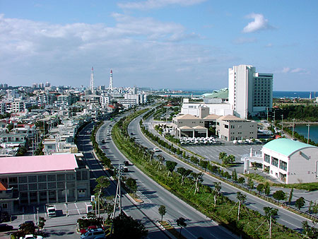 오키나와현 가데나정 - 기타나카구스쿠촌의 가데나 기지를 따라 야자수 가로수가 늘어선 경관은 요미우리 신문 선정 "신·일본 가로수 100경"(1994년) 중 하나로 선정되었다.[20]