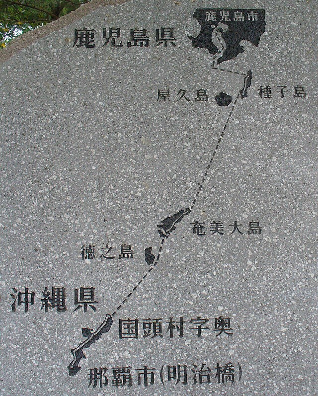 주요 경유지 | 가고시마현 니시노모테시 구마게군 미나미타네정 (다네가섬) 아마미시 오시마군 세토우치정 (아마미오섬) 오키나와현 구니가미군 구니가미촌 나고시 나카가미군 가데나정 기노완시 우라소에시 (오키나와섬) |