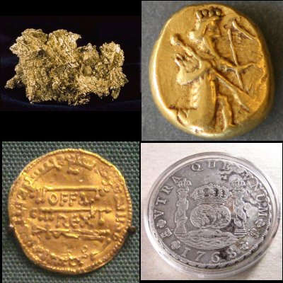 금과 은 같은 귀금속은 역사적으로 무역에 사용되었으며, 초기에는 금괴 형태로, 이후에는 다양한 발행자(일반적으로 왕국과 제국)의 주화 형태로 거래되었다. 화폐가 사용되기 전 귀금속을 화폐 교환에 사용한 가장 오래된 기록은 메소포타미아와 이집트에서 기원전 3천 년대로 거슬러 올라간다.[2] 초기 화폐는 금괴 외에도 다양한 형태를 띠었는데, 예를 들어 기원전 7세기 말 주나라의 중국에서는 청동 삽폐가 흔하게 사용되었다. 소아시아의 리디아에서도 화폐 형태가 개발되었으며, 그 사용은 인근 그리스 도시로 퍼져나가 나중에 다른 많은 곳으로 확산되었다.[1]때로는 지역 통치자가 공식적인 통화 시스템을 강요하기도 했다. 예를 들어, 학자들은 로마의 왕 세르비우스 툴리우스가 고대 로마의 초기 역사에 원시적인 통화 시스템을 만들었다고 잠정적으로 제안했다. 툴리우스는 기원전 6세기에 통치했는데, 로마가 공식적인 주화 시스템을 개발하기 수세기 전이었다.[3]