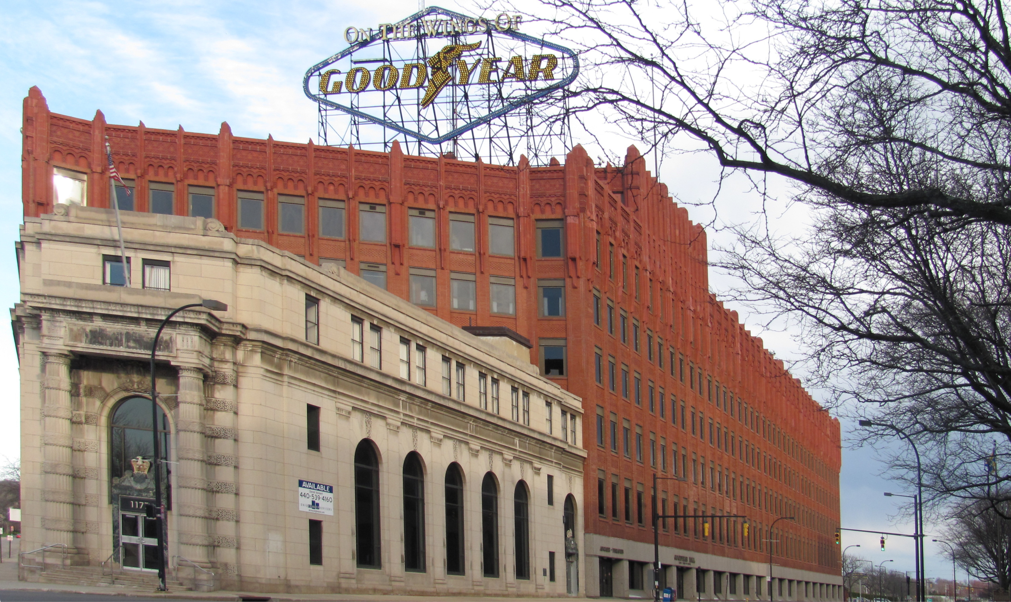 1898년 프랭크 세이버링이 오하이오주 애크런에 첫 번째 굳이어 공장을 설립했다.[9] 이 공장에서는 자전거 및 마차 타이어, 말굽 패드, 포커 칩 등을 생산했다.[9]1901년 설립자 프랭크 세이버링이 헨리 포드에게 레이싱 타이어를 제공했다.[10] 1903년에는 굳이어 사장 폴 W. 리치필드가 최초의 튜브리스 자동차 타이어 특허를 획득했다.[11] 1908년, 포드의 모델 T에 굳이어 타이어가 장착되었다.